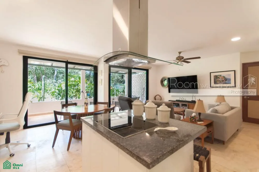 This garden level condo is located in Anah Village within the Akumal area. It features indoor-outdoor living spaces and is part of a 717-acre residential resort community. The complex is situated near a golf course and the Caribbean coast. Tulum Country Club, formerly known as Bahia Principe, lies in the Riviera Maya, approximately halfway between Playa del Carmen and Tulum, and about 50 miles south of the airport.