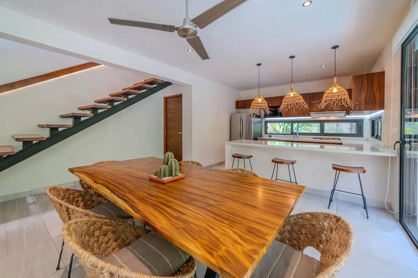 This independent house is located in the La Veleta area of Tulum, on Calle 8, a short distance from the main street, Calle 7.