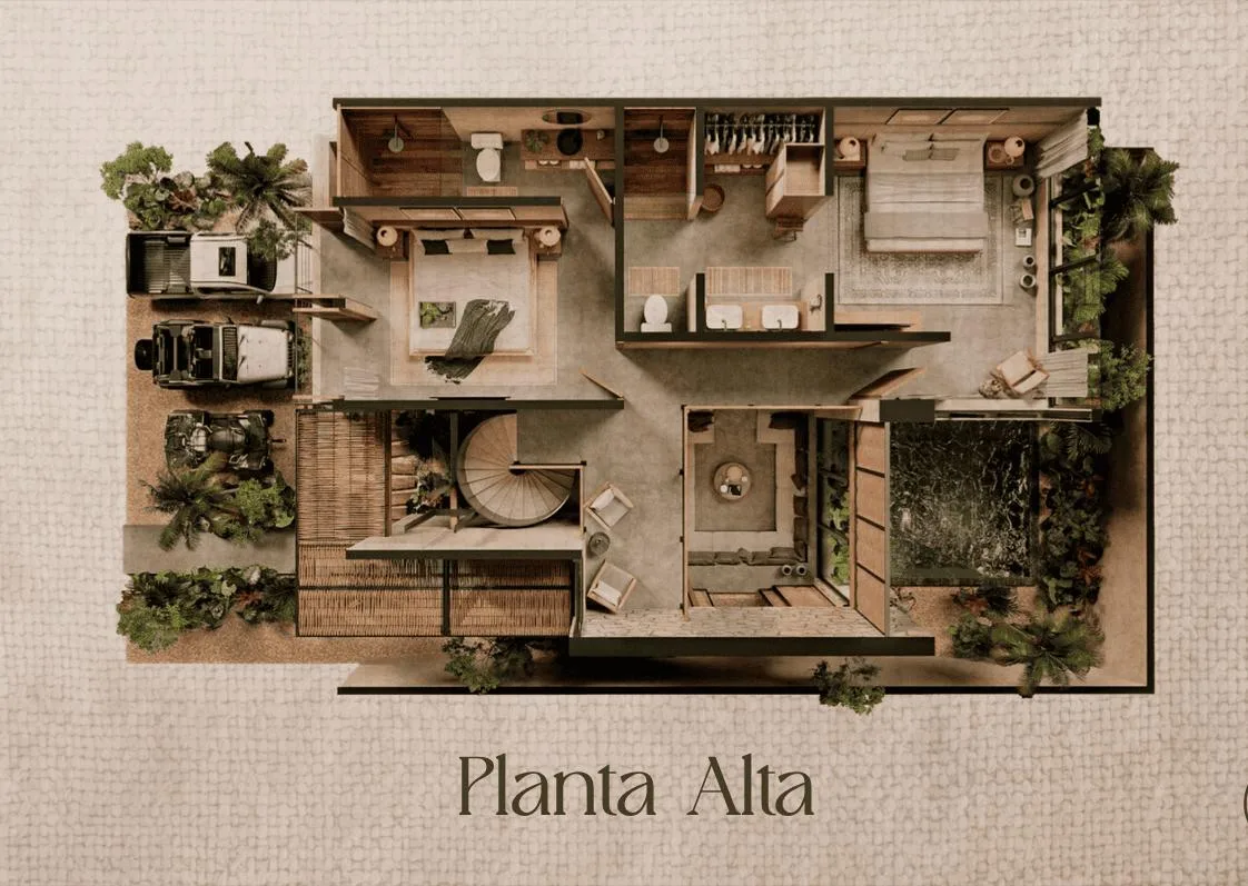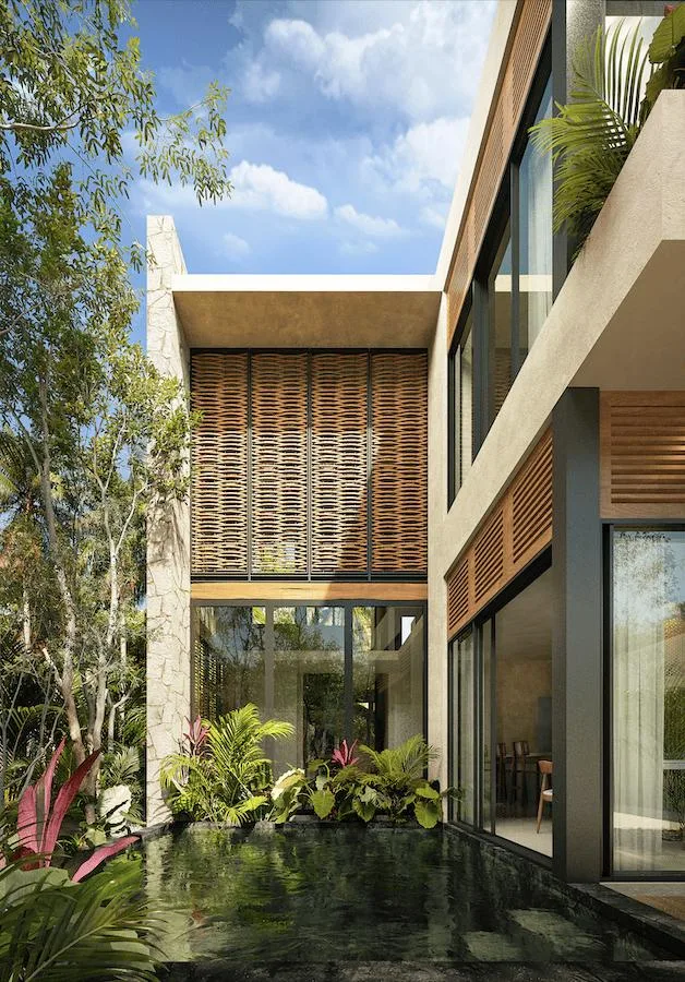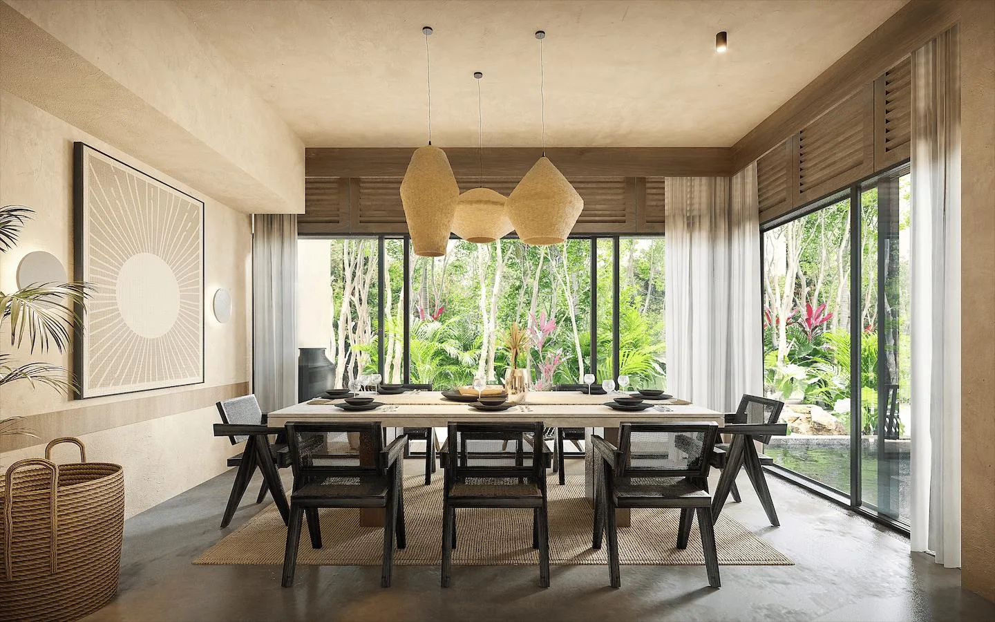 A detached house located just 10 minutes from the center of Tulum and the beaches. It features a contemporary design with natural materials and large windows that provide ample natural light and ventilation.