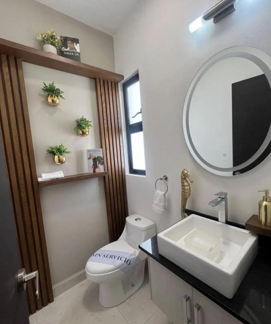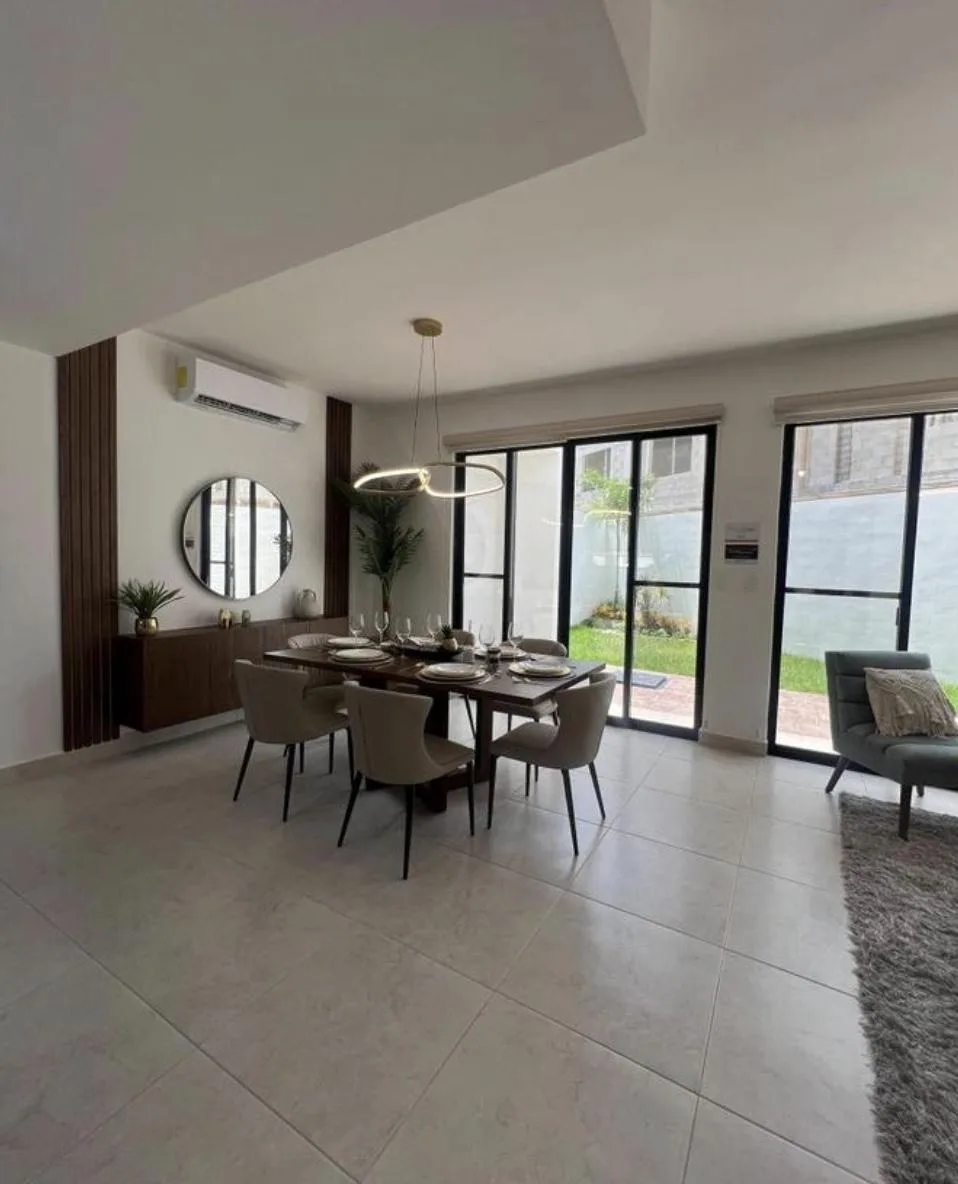 The home is located on Huayacán Avenue in Cancun, with access to the Maya Train and proximity to Cancun International Airport.