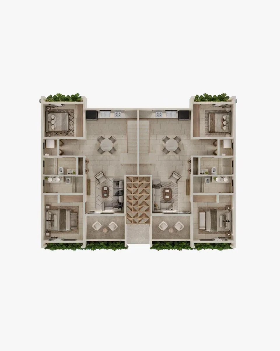 This house for sale in Tulum has a total size of 478. 8 square meters and features two bedrooms.