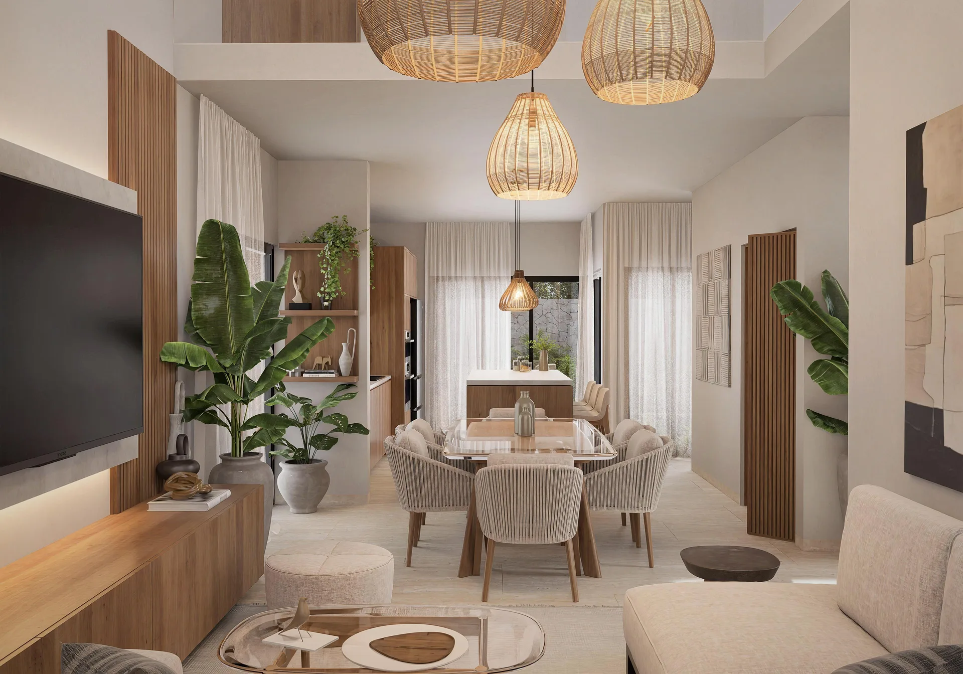 Discover a home of 3 bedrooms and 117. 77 square meters, designed for elegance and functionality. The property combines spacious, bright areas with high-end finishes and offers amenities such as a private swimming pool, an entertainment terrace, and double-height social areas that create a sense of openness and sophistication. Every detail has been carefully considered to provide comfort and a welcoming atmosphere.