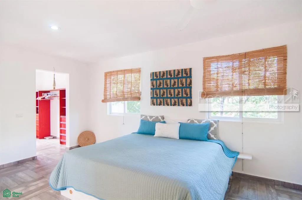 This spacious two-story family home is located in the quiet jungle community of Rancho San Martin in the Riviera Maya. The property is situated approximately one kilometer from a world-famous beach known for snorkeling with sea turtles. The location is between Playa del Carmen and Tulum.