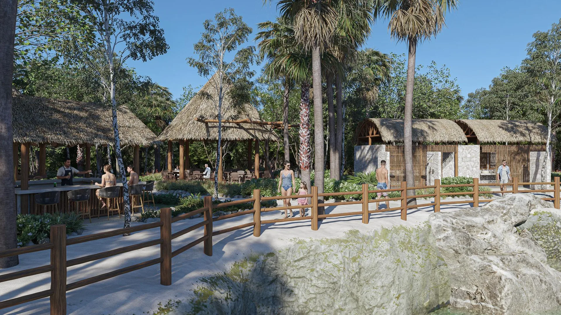 The residence is part of a private community with exclusive amenities. These include cenote-style pools, zen zones, sports and recreation areas designed for health and community. Additional amenities feature a pet park, family palapas, grill zones, paddle and pickleball courts, and a climate-controlled gym. The community integrates sustainability and security within a natural environment.