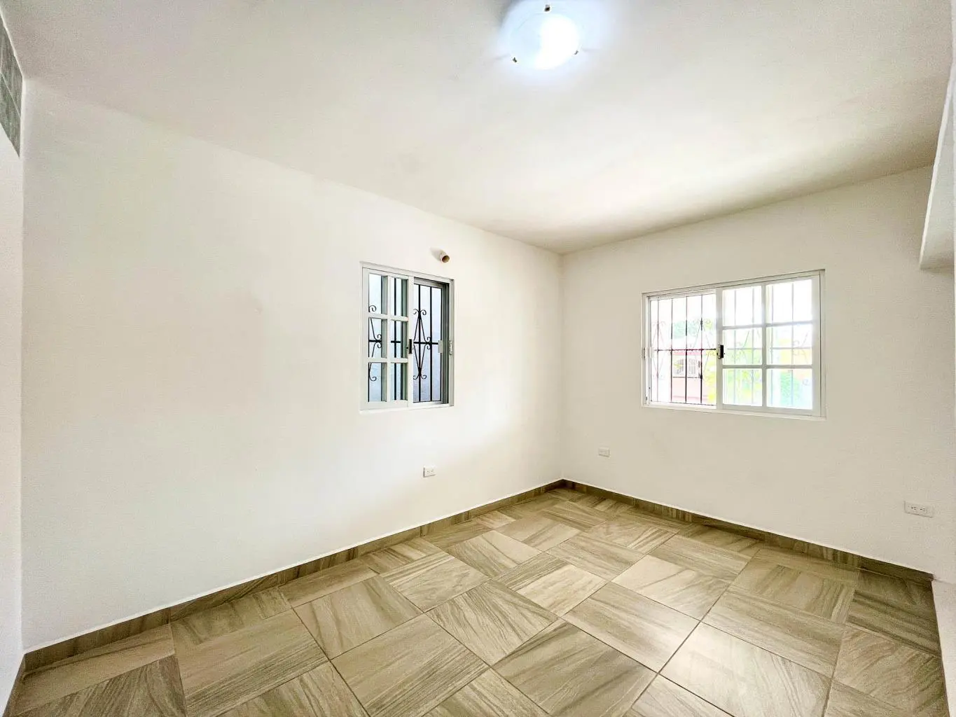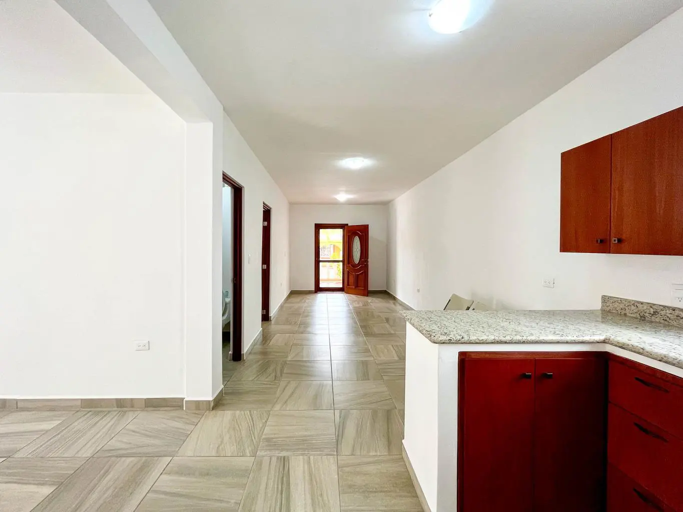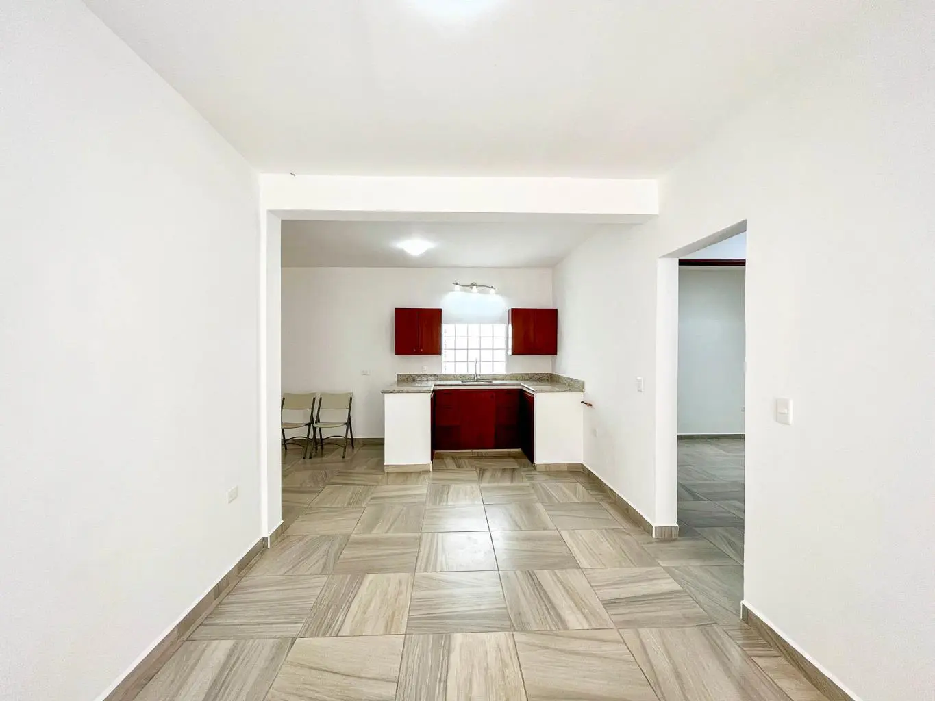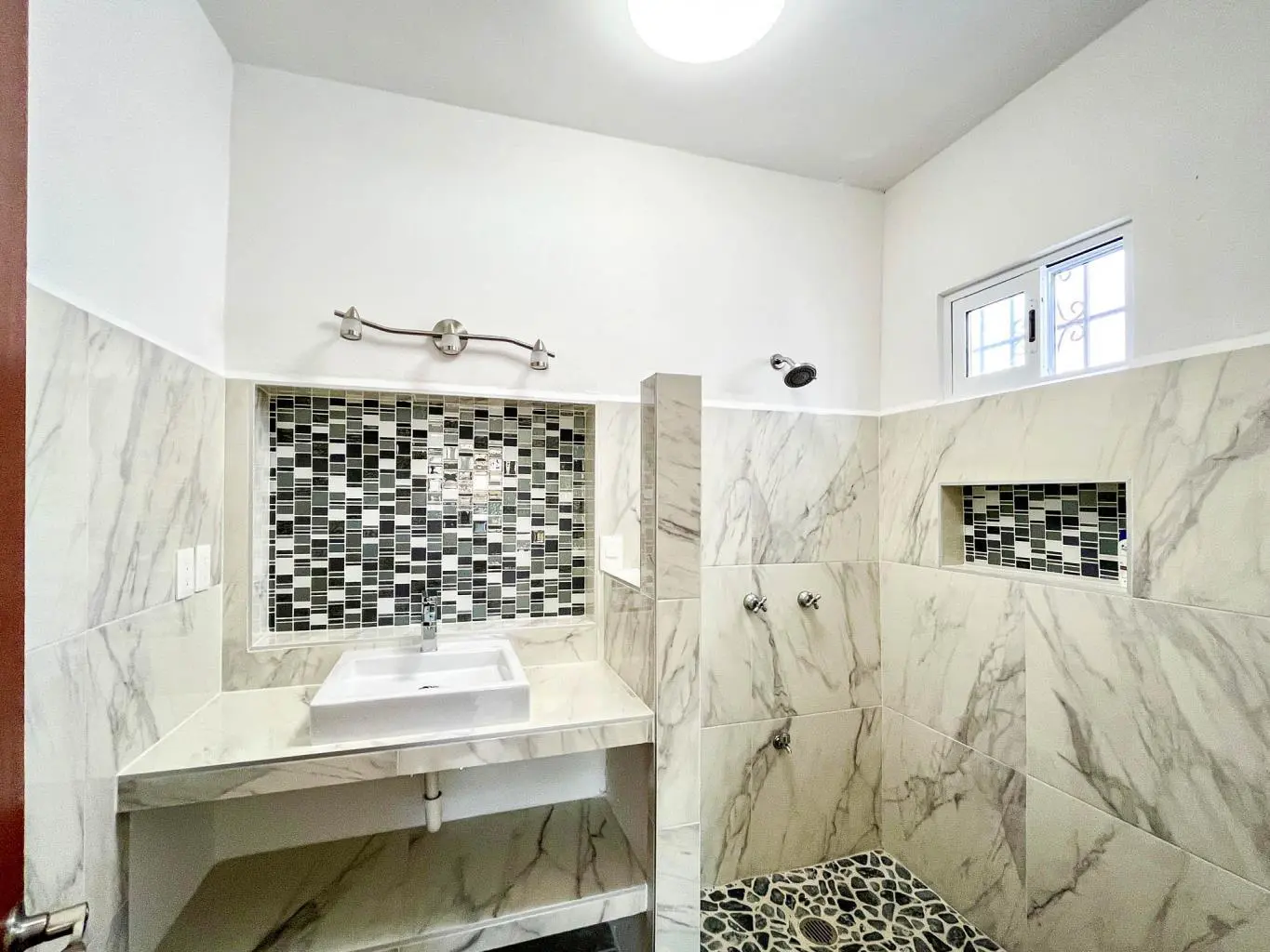 Discover the charm of this newly remodeled three-bedroom home in Chemuyil. It combines modern aesthetics with traditional appeal, offering a spacious living area and a kitchen with wooden cabinets and granite countertops.