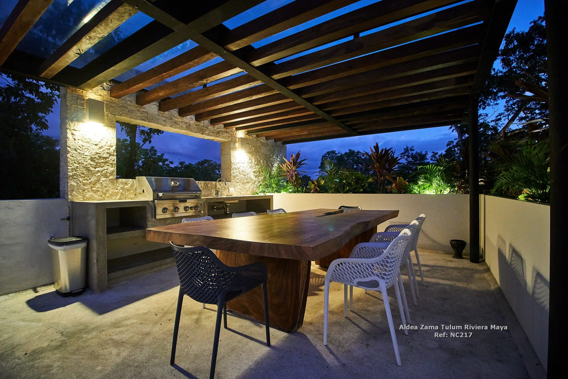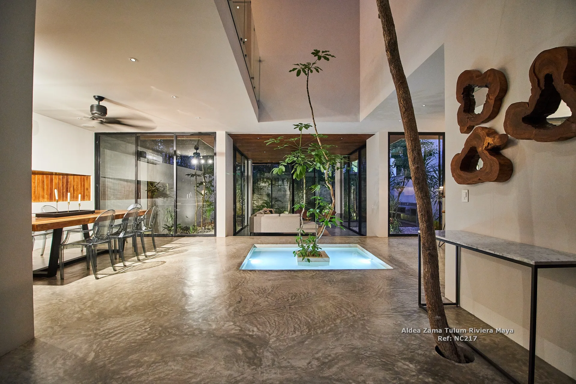 This property is located in Aldea Zama, Tulum. It features 394 square meters of construction with 4 bedrooms and 4. 5 bathrooms. The layout includes a fully equipped kitchen and social areas designed for comfort.