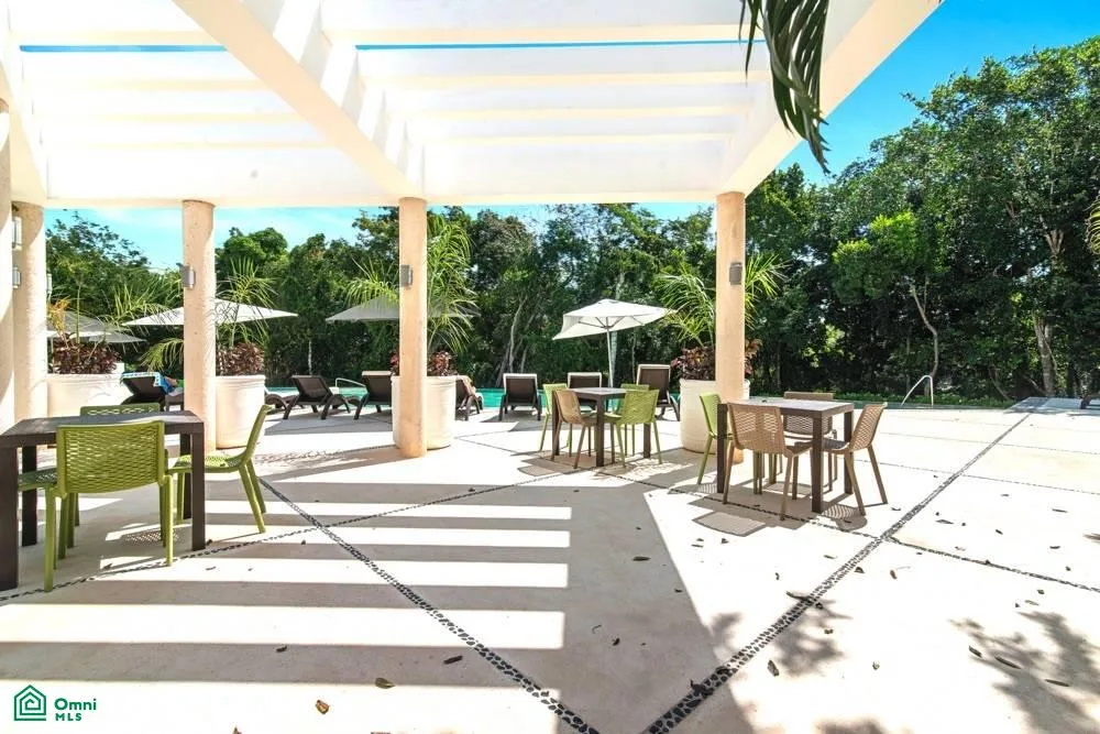 The property is located within the TAO Residential building in Akumal, inside the Tulum Country Club resort community. Building amenities include two swimming pools and a fitness center. Access is provided to a 27-hole golf course, shuttle service to the beach, and beach club access.