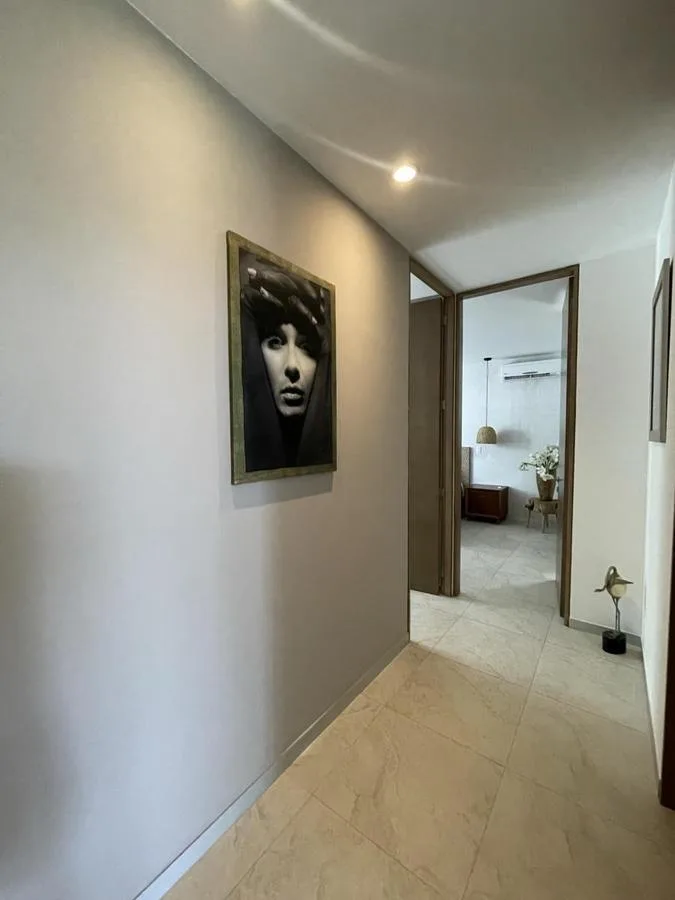 This luxurious duplex penthouse features 3 bedrooms arranged over 2 floors. The first floor includes 2 bedrooms with 2 fully equipped bathrooms, a fitted kitchen, a laundry room with washer and dryer, a large living room and dining area, and a balcony. The second floor, with a separate lockable entrance, contains the third bedroom with a full bathroom and a solarium with a small private pool.