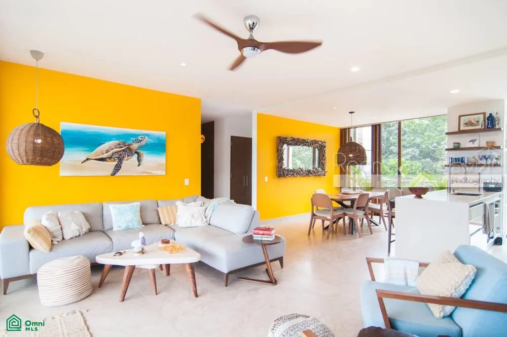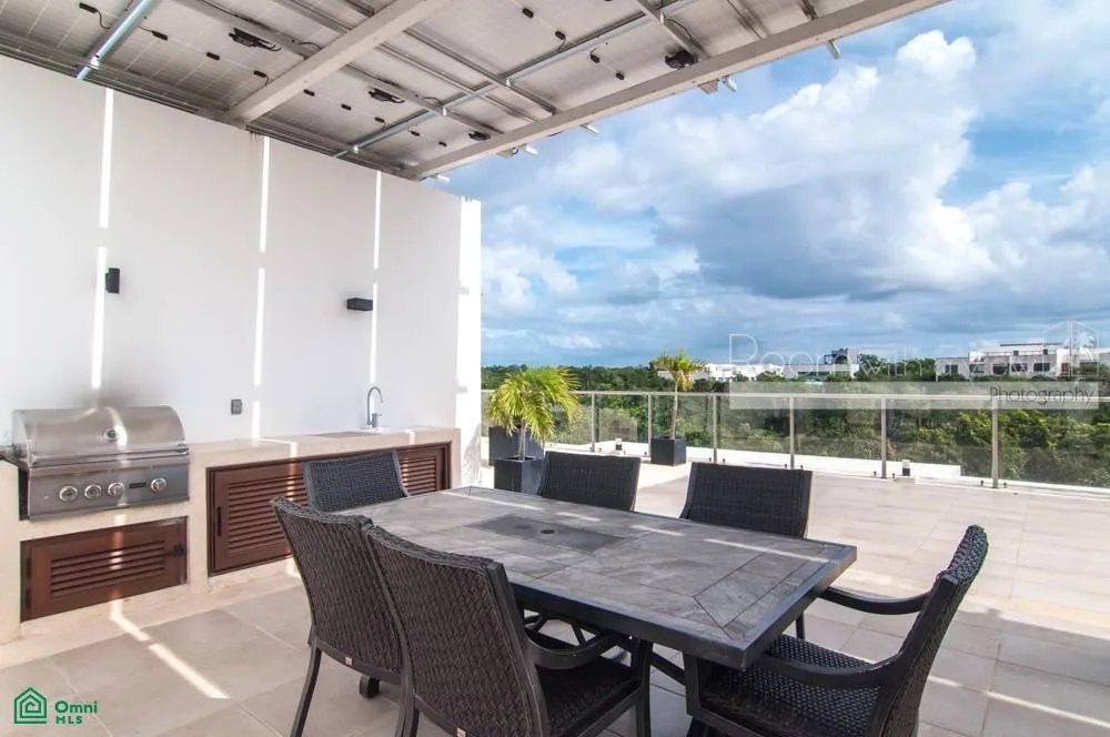 This beautifully updated penthouse condo is located within TAO Residential in Akumal. The residence is situated inside the 717-acre Tulum Country Club resort community, offering a tranquil setting surrounded by lush tropical jungle and a world-class golf course, just minutes from the Caribbean coast.