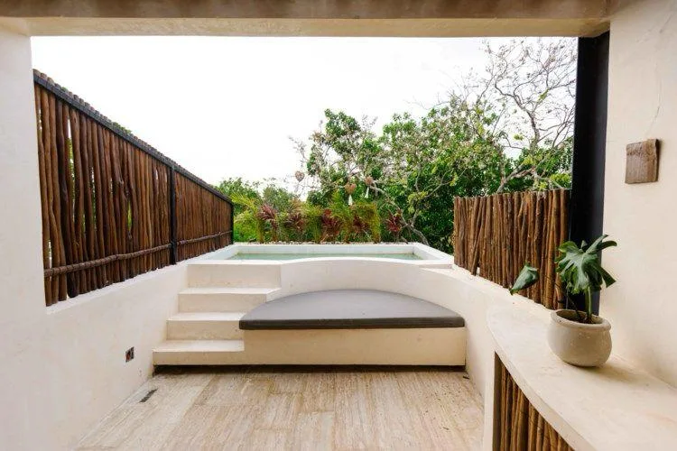 This property is situated in the gated community of Aldea Maya, Aldea Zama, a residential area in Tulum. The boutique development comprises 9 units and includes controlled access.