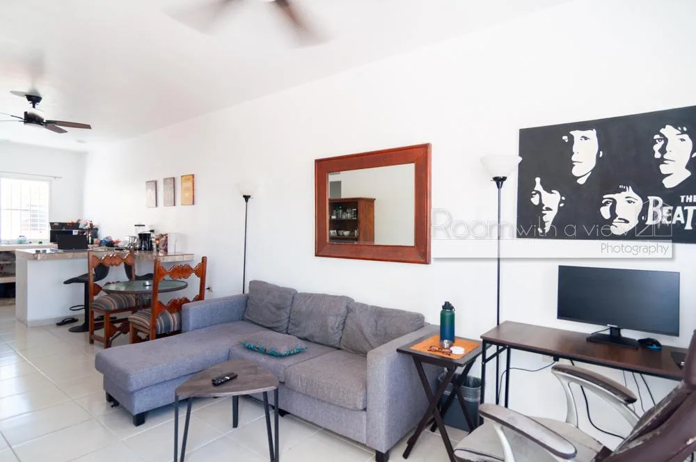 This duplex is located in the tranquil community of Chan Chemuyil within the Riviera Maya. The area is known for its colorful homes and welcoming atmosphere, offering a relaxed lifestyle. The coast is just minutes away, and the airport is approximately one hour distant.