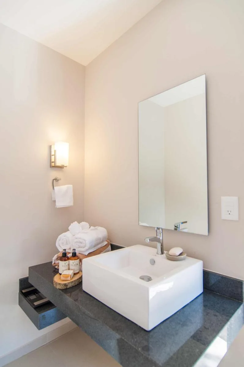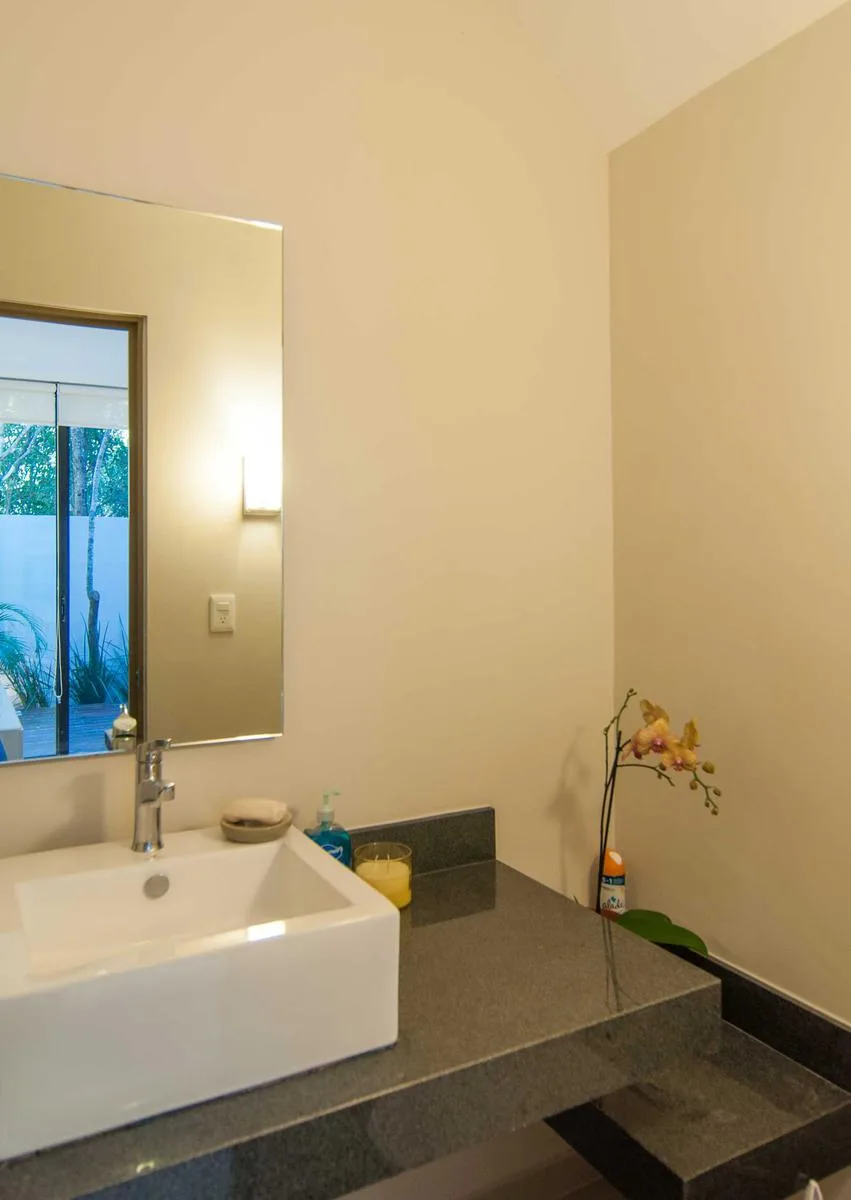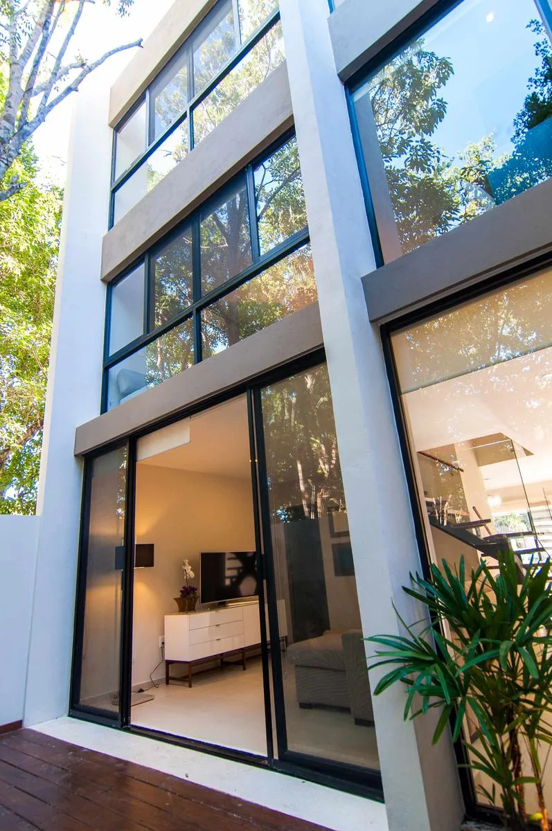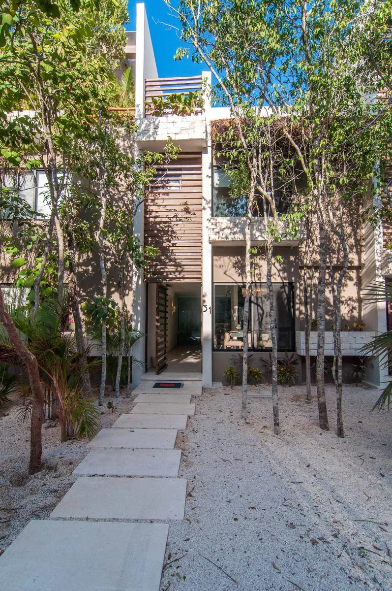 This fully furnished 2-bedroom townhouse is located in Aldea Zama, Tulum, and offers jungle views. Its position is central and proximate to the main entrance of Aldea Zama. The property features a unique layout spanning three floors with a private backyard and a rooftop terrace.