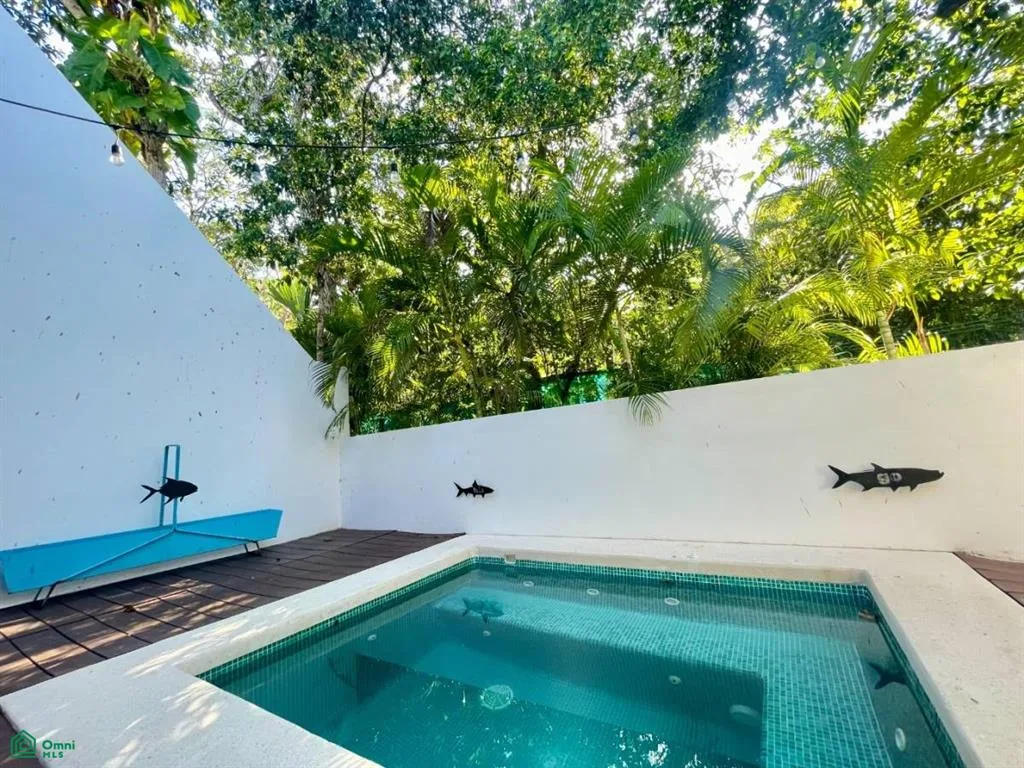 This modern two-bedroom, two-bathroom townhouse is located within the secure, gated Tao Community at Tulum Country Club. The residence is beautifully designed for tropical living.