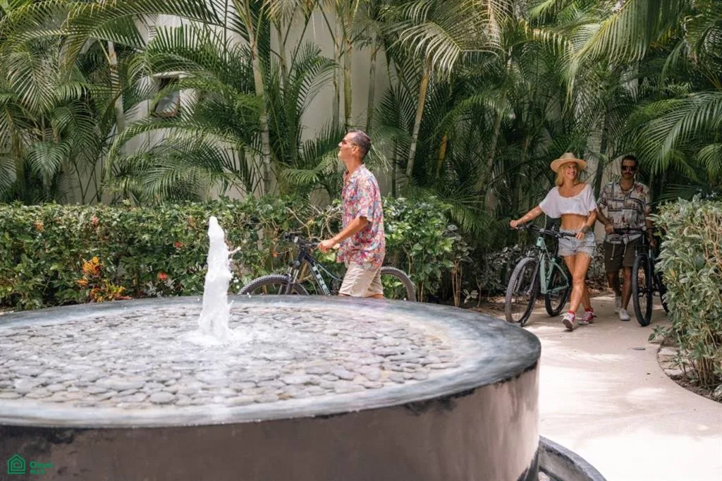 Residents have access to the Tao Wellness Center, which features yoga facilities, a gym, and a spa. The community also includes a dedicated beach club and offers golf cart transportation within its grounds. The property is maintained with 24-hour security.