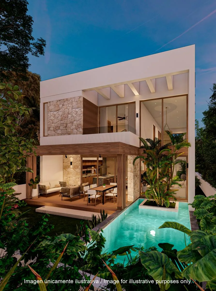This luxury residence is located within one of the most exclusive communities in the Riviera Maya. The property features a contemporary style and is set within a natural environment. It offers 3 bedrooms and 2. 5 bathrooms across a total constructed area of 244. 06 square meters (2, 627. 03 square feet). The design emphasizes spacious interiors, open social areas, and integration with lush vegetation.