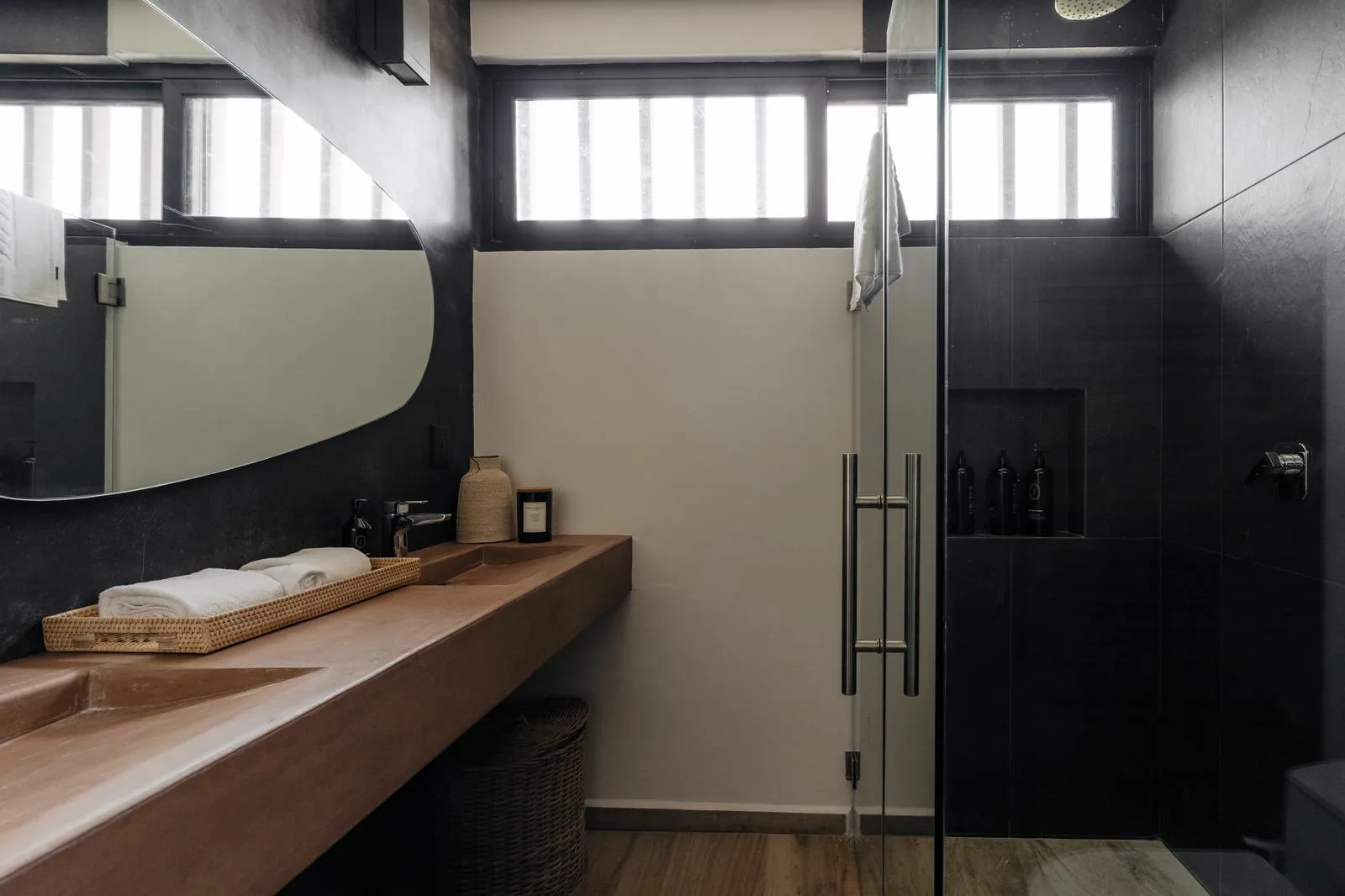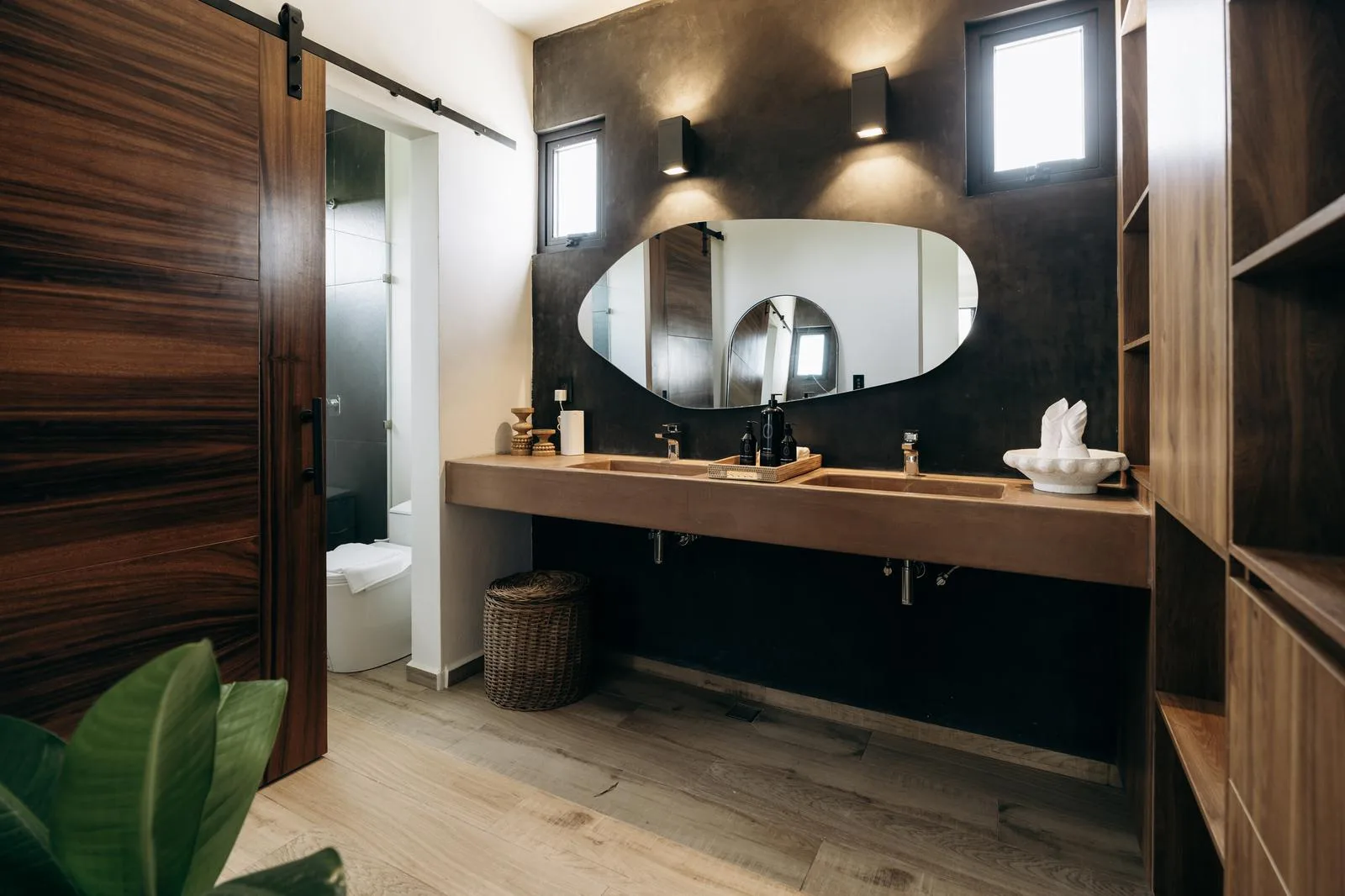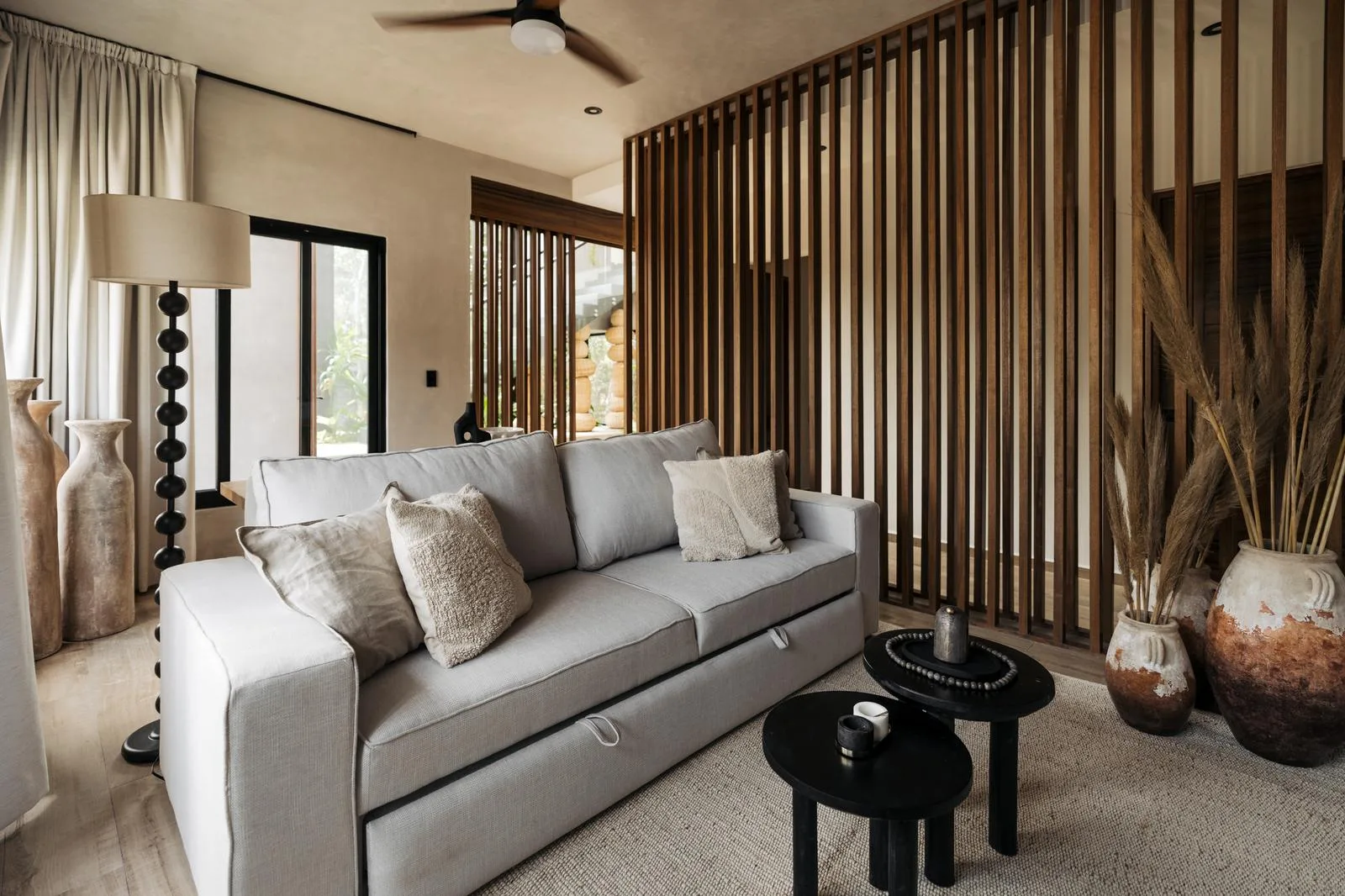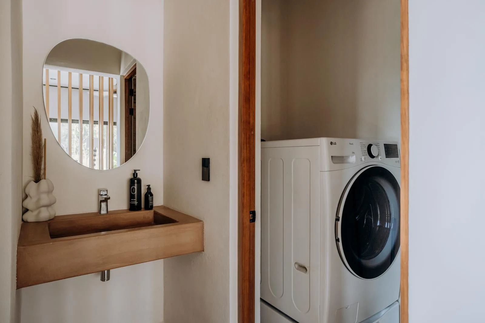 The residence is situated in a peaceful, ecologically conscious gated community near the beach in Tulum. The area is recognized for sustainable development and a harmonious connection with nature. The neighborhood combines modern amenities with environmentally friendly design, offering a tranquil environment surrounded by lush greenery. It is close to the vibrant culture, beaches, and attractions of Tulum.