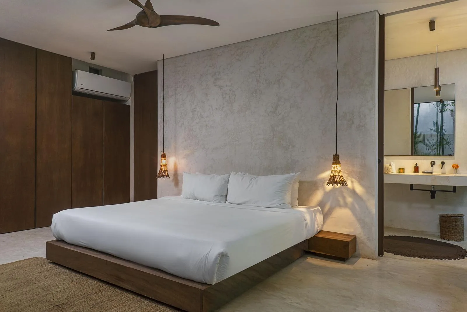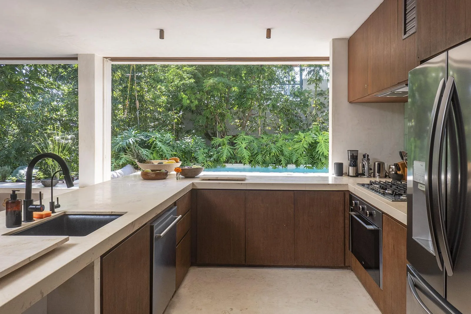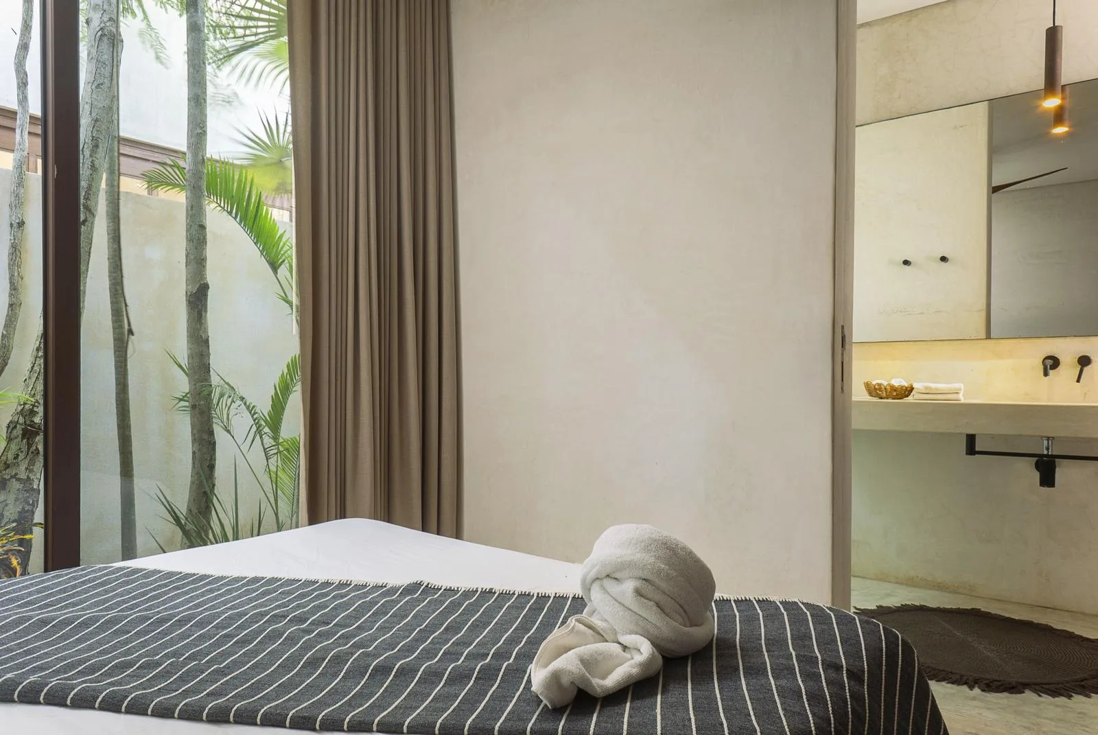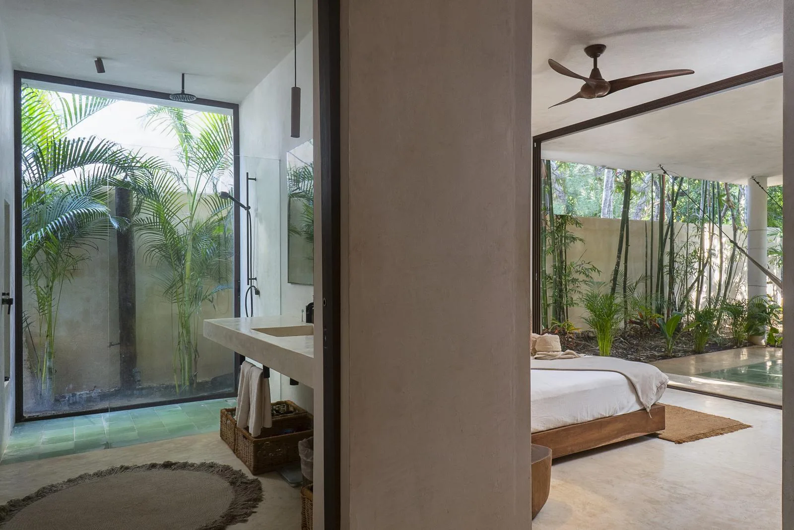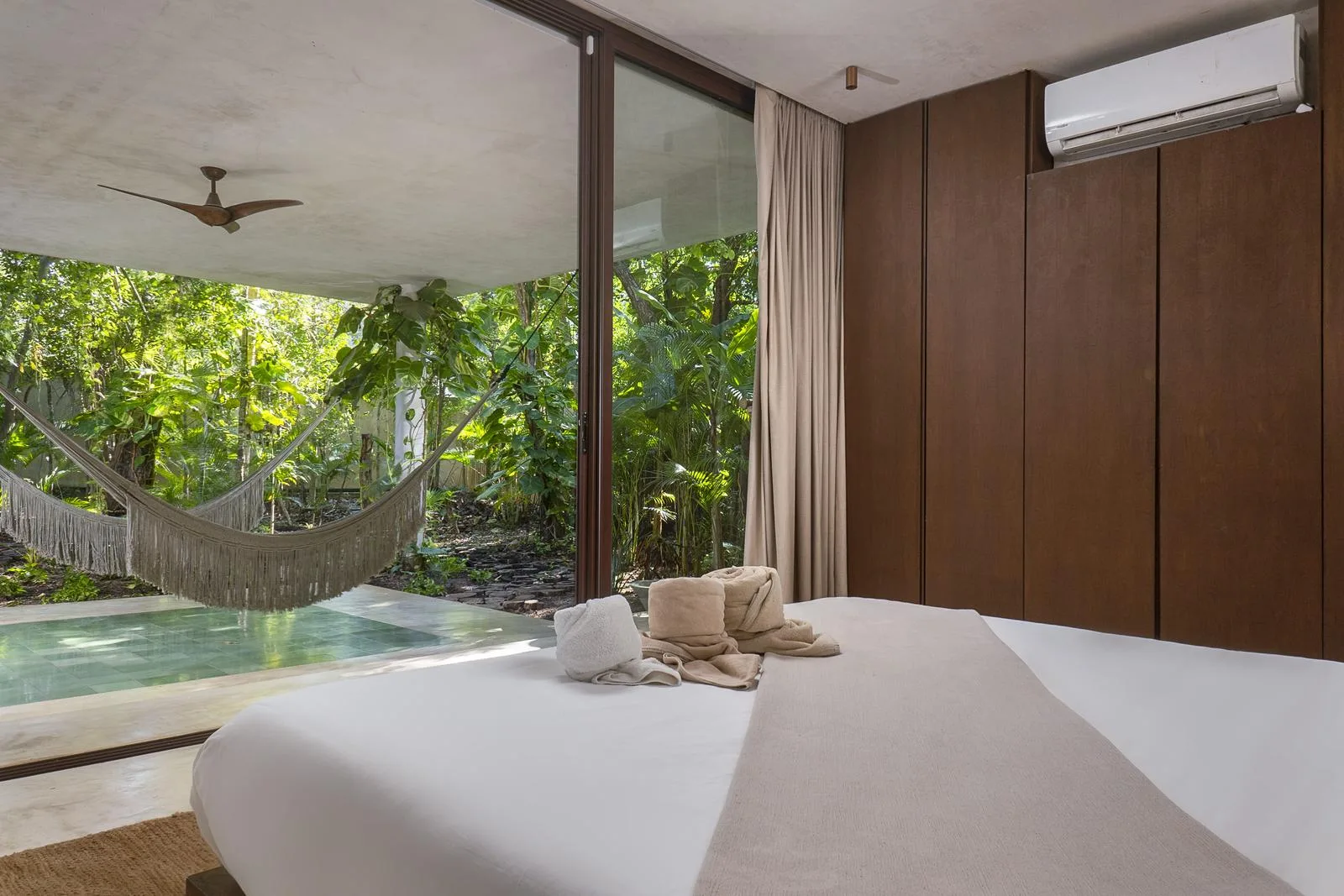 This villa combines contemporary architectural design with natural elements from the region. It is situated within the gated community of Aldea Zama in Tulum.