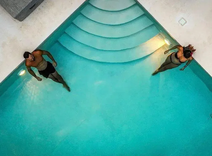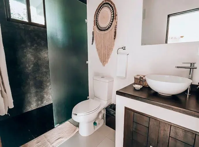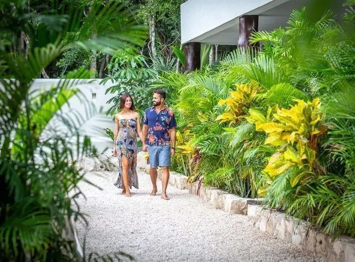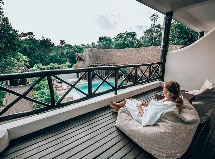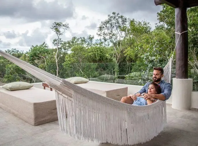 This boutique hotel villa consists of 6 custom-made suites decorated with local crafts and a Tulum aesthetic. Each suite has an en-suite bathroom, a terrace, air conditioning, and views of the pool. The configuration includes 4 King Size Suites for two guests and 2 Double Suites for four guests, providing a total standard capacity for 16 guests. The capacity can be expanded to accommodate 20 to 24 guests with additional beds.