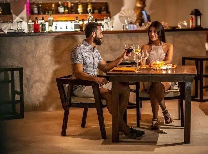 The property features a restaurant and bar under a main palapa structure, offering breakfast, lunch, dinner, and drinks. Common areas include a swimming pool, a rooftop, and lounge areas. The facility can host events such as weddings, birthdays, and anniversary parties for up to 80 guests. A cenote named Xunaan Ha is located approximately 200 meters away; it is an open cenote that connects with 52km of underground caves and serves as a diver sanctuary.