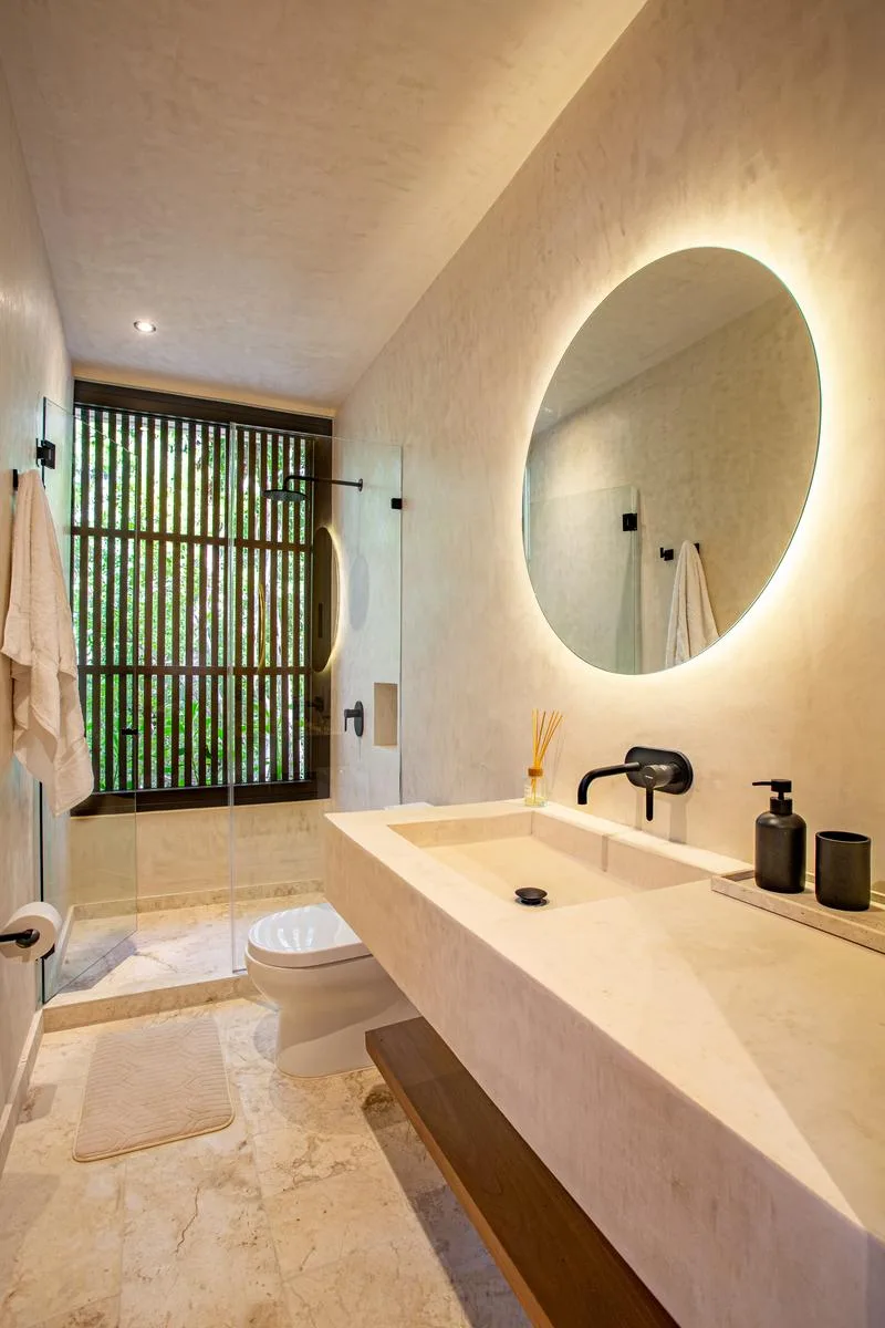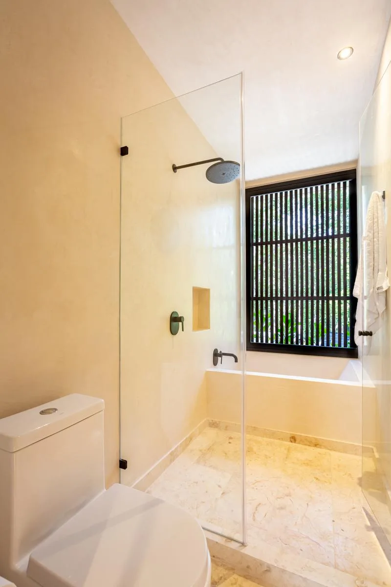 The master plan preserves over 50% of existing trees, maintaining Tulum's identity and providing interior spaces with views of jungle gardens, green corridors, and water features.