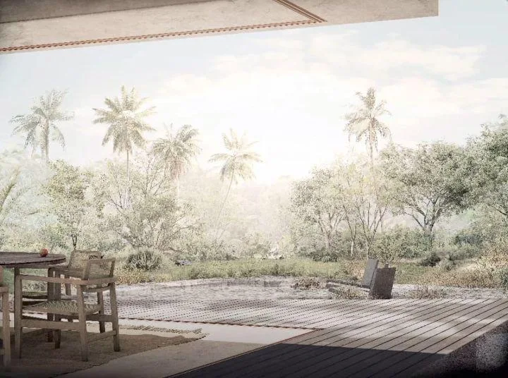 The rooftop terrace offers views of the surrounding jungle and the sea. The community provides access to private lagoons and cenotes.