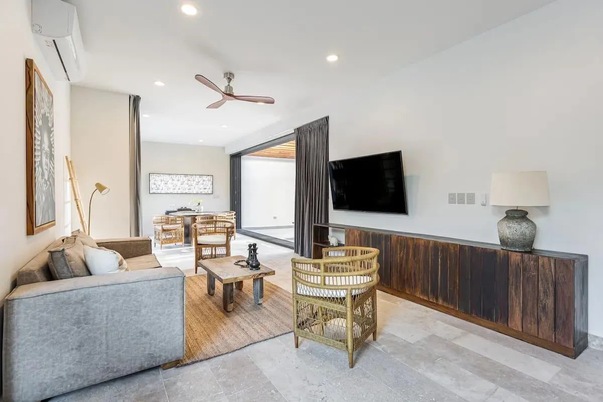 This luxurious three-level residence is situated in one of the most exclusive areas of Tulum. Its contemporary design offers a functional layout.