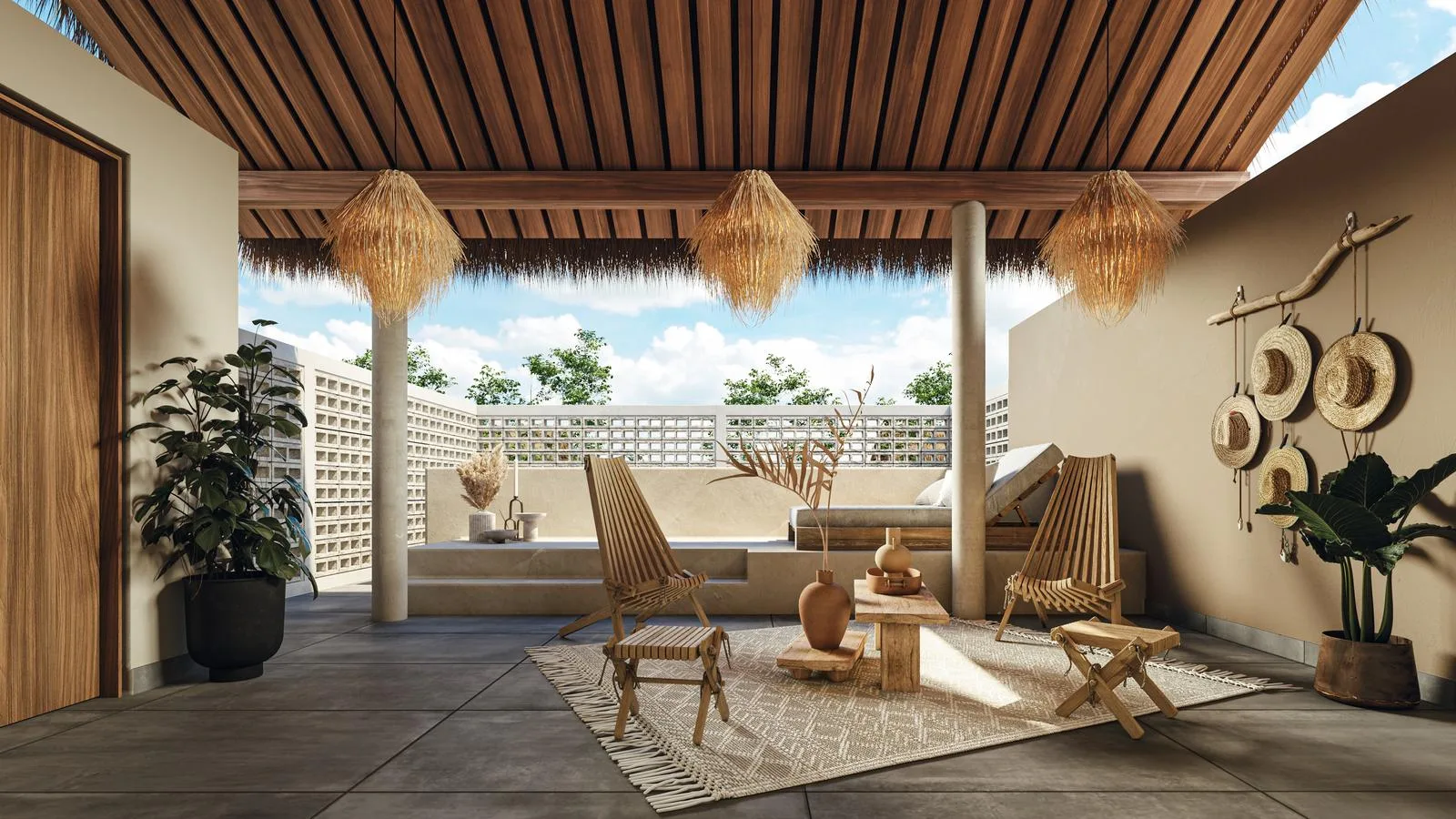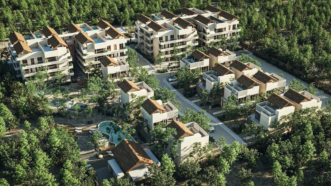 A rooftop garden provides panoramic views, perfect for enjoying sunsets. The contemporary design incorporates organic touches that reflect the essence of Tulum. Open spaces seamlessly integrate indoor and outdoor areas for a unique connection with nature.