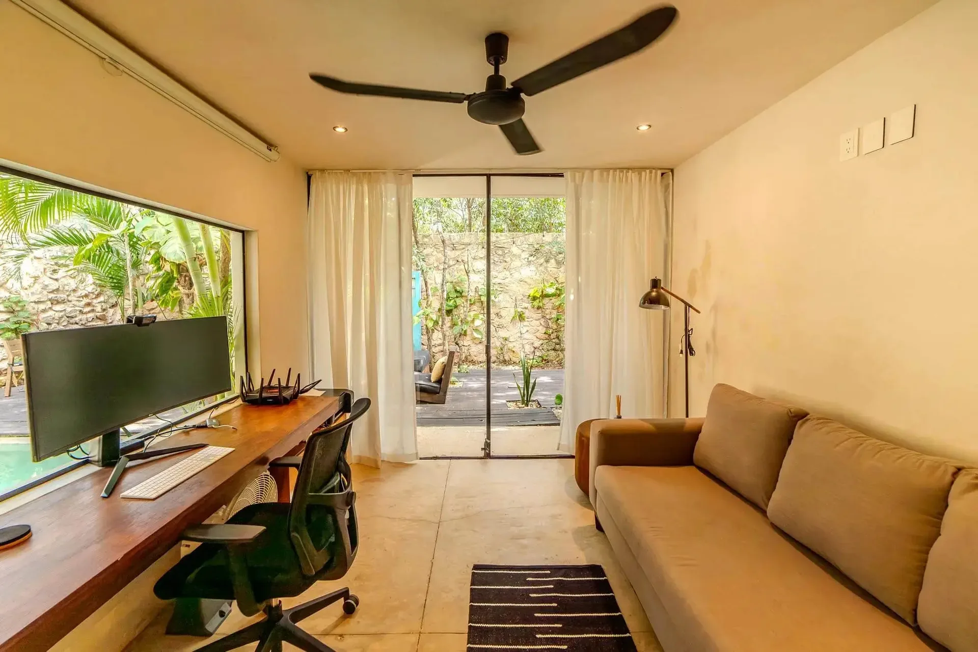 The property includes 2. 5 bathrooms, a living room, a kitchen, and is furnished. It is located just 10 minutes from the beach, tourist attractions, and the hotel zone, and only 5 minutes from the city center.