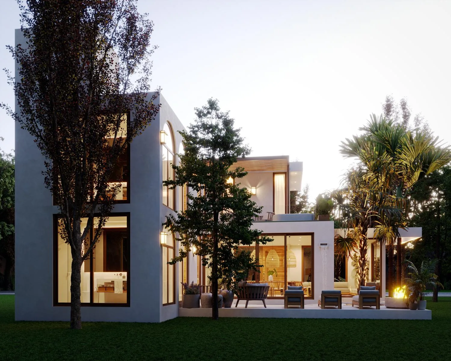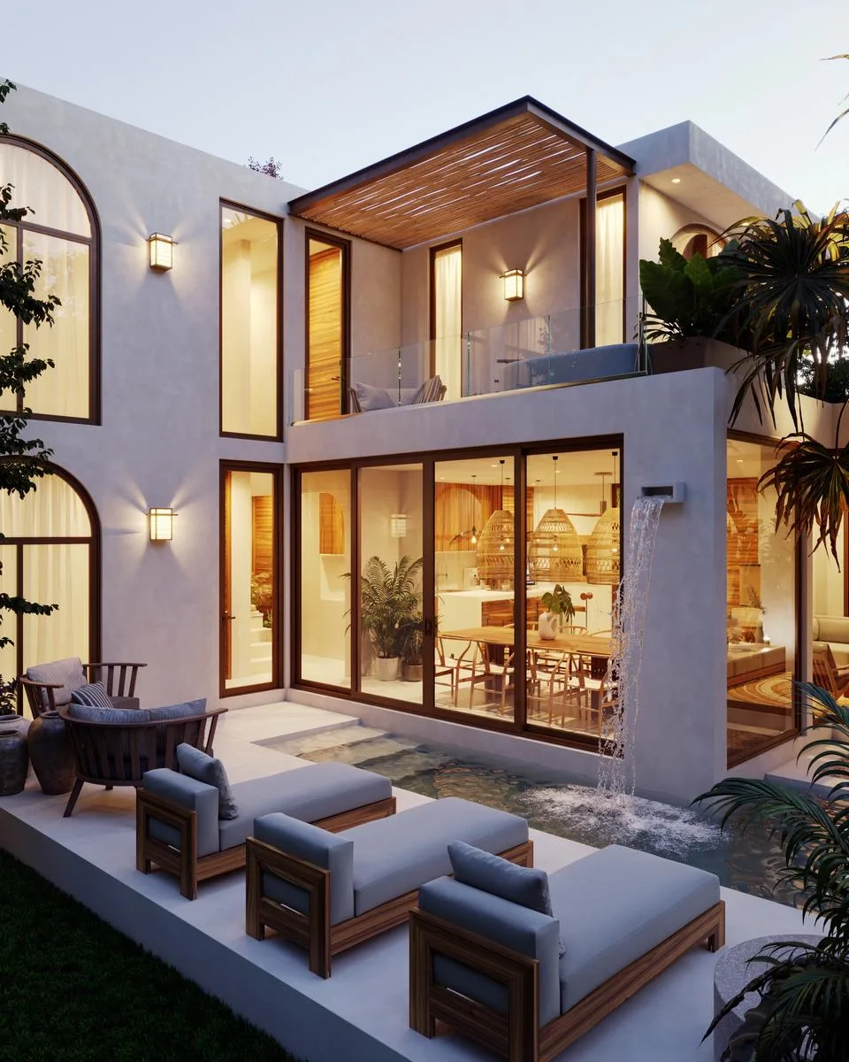 Emerging from the sacred sources of the region, this villa opens towards high ceilings and an open design that invites you to breathe, stay, and enjoy. The fireplace and outdoor living area become natural places for intimate gatherings, shared stories, and unforgettable nights under the stars.