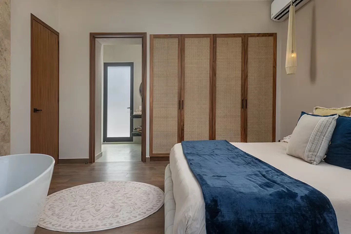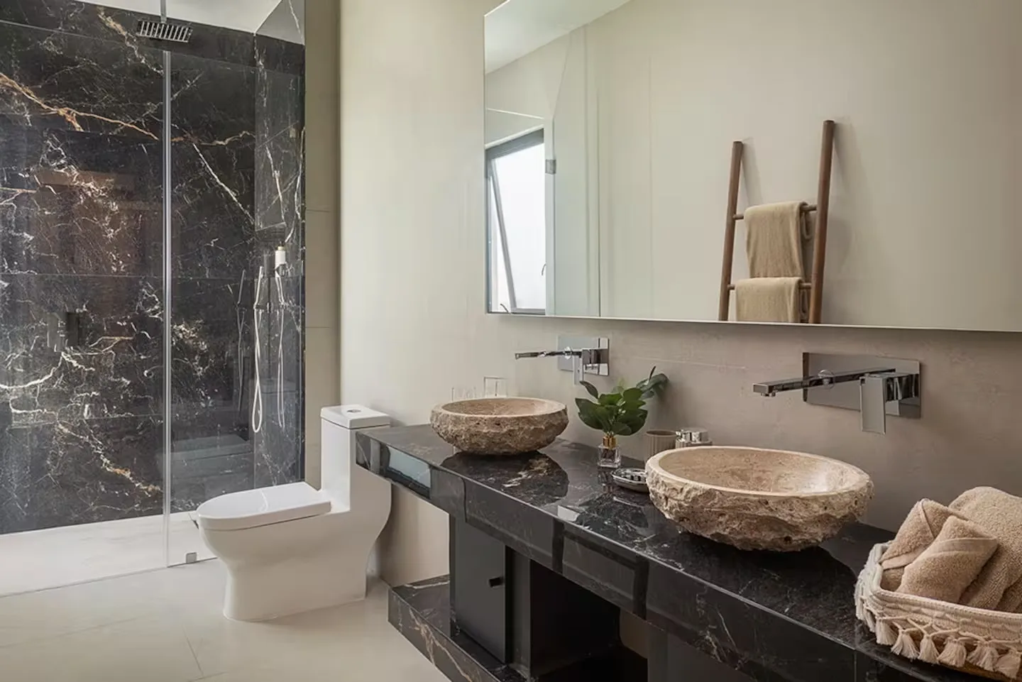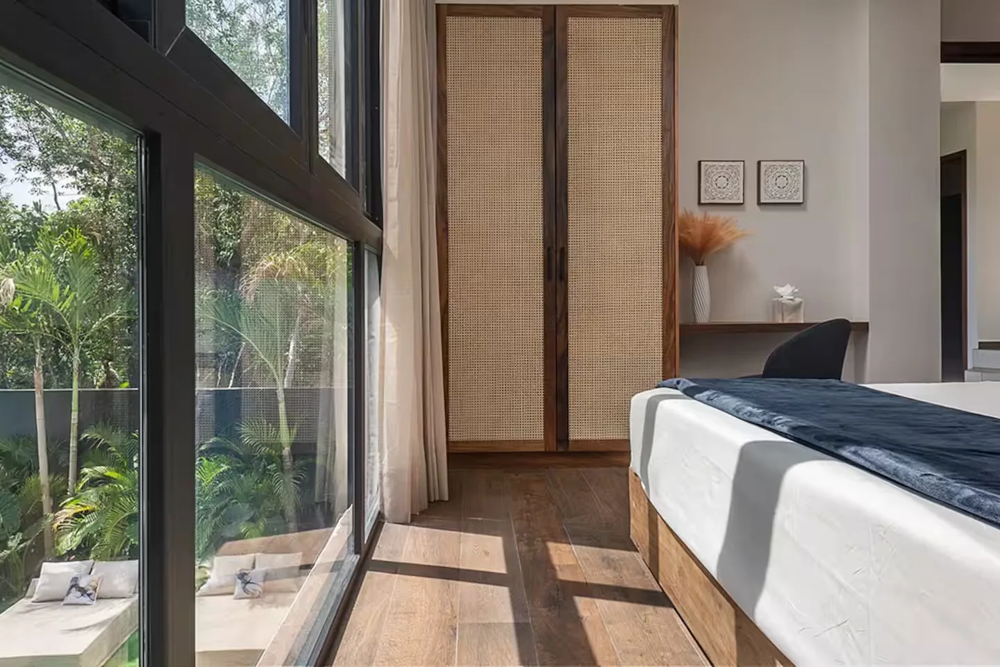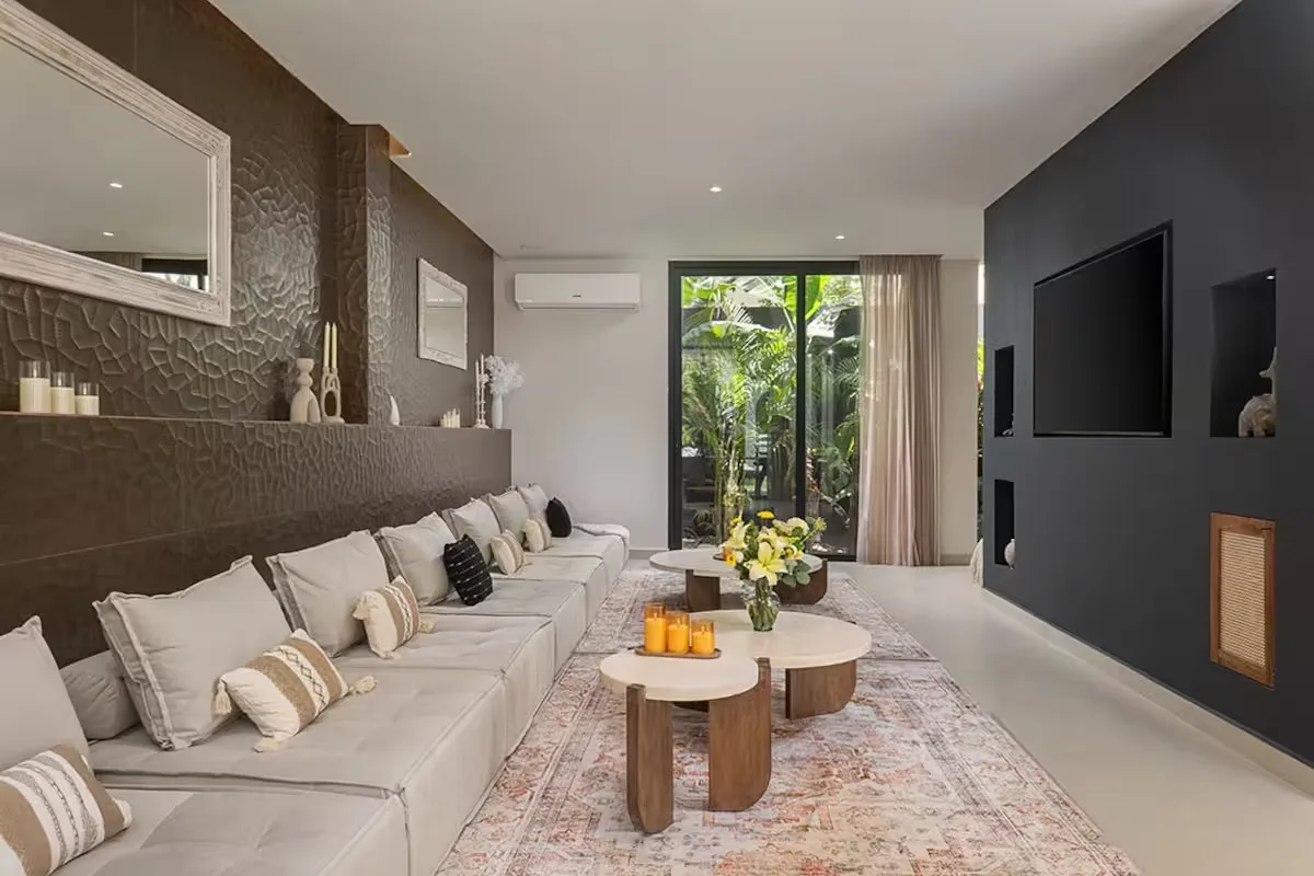Each bedroom includes its own ensuite bathroom, a king-size bed, and ample storage space. The villa is equipped with robust air conditioning, high-speed fiber optic internet with Starlink backup, and a whole-house generator.