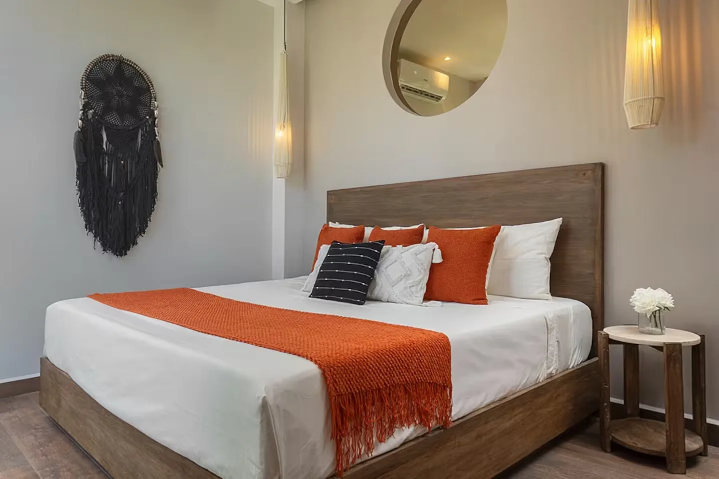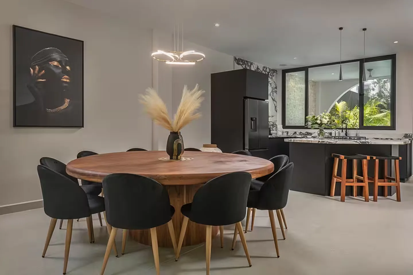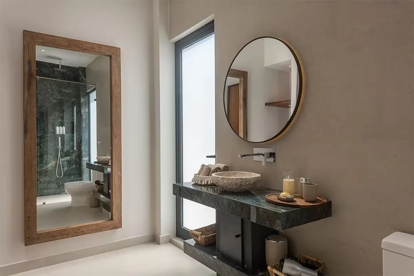 Each bedroom includes its own ensuite bathroom, a king-size bed, and ample storage space. The villa is equipped with robust air conditioning, high-speed fiber optic internet with Starlink backup, and a whole-house generator.