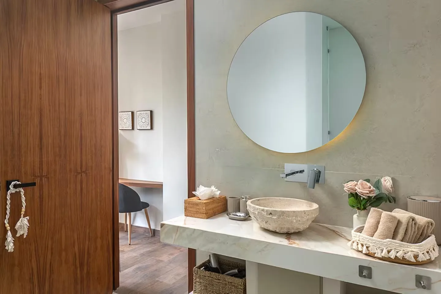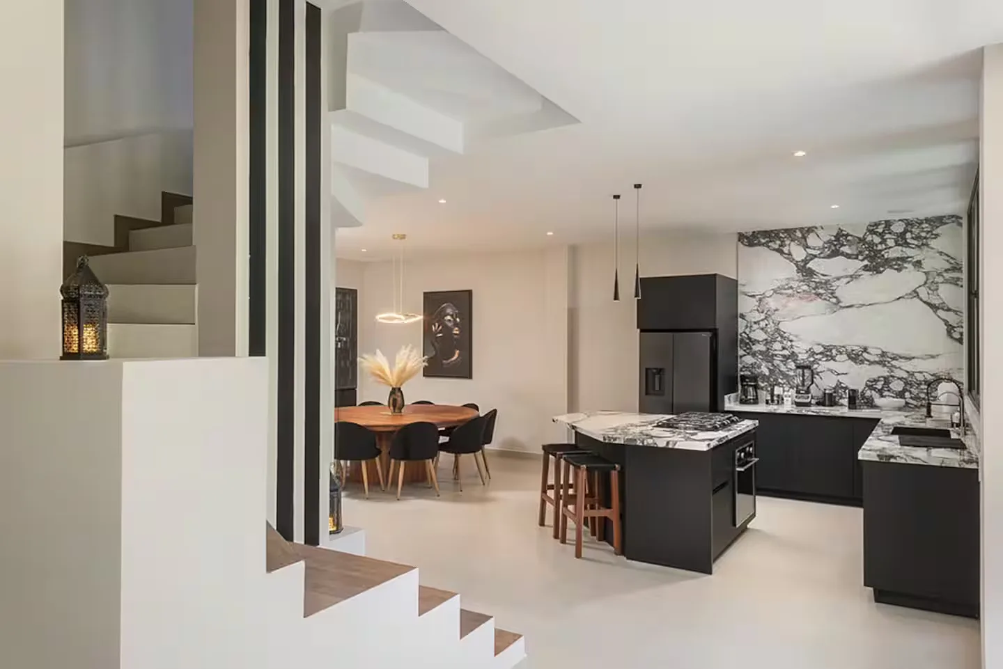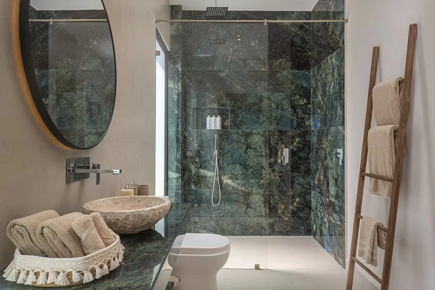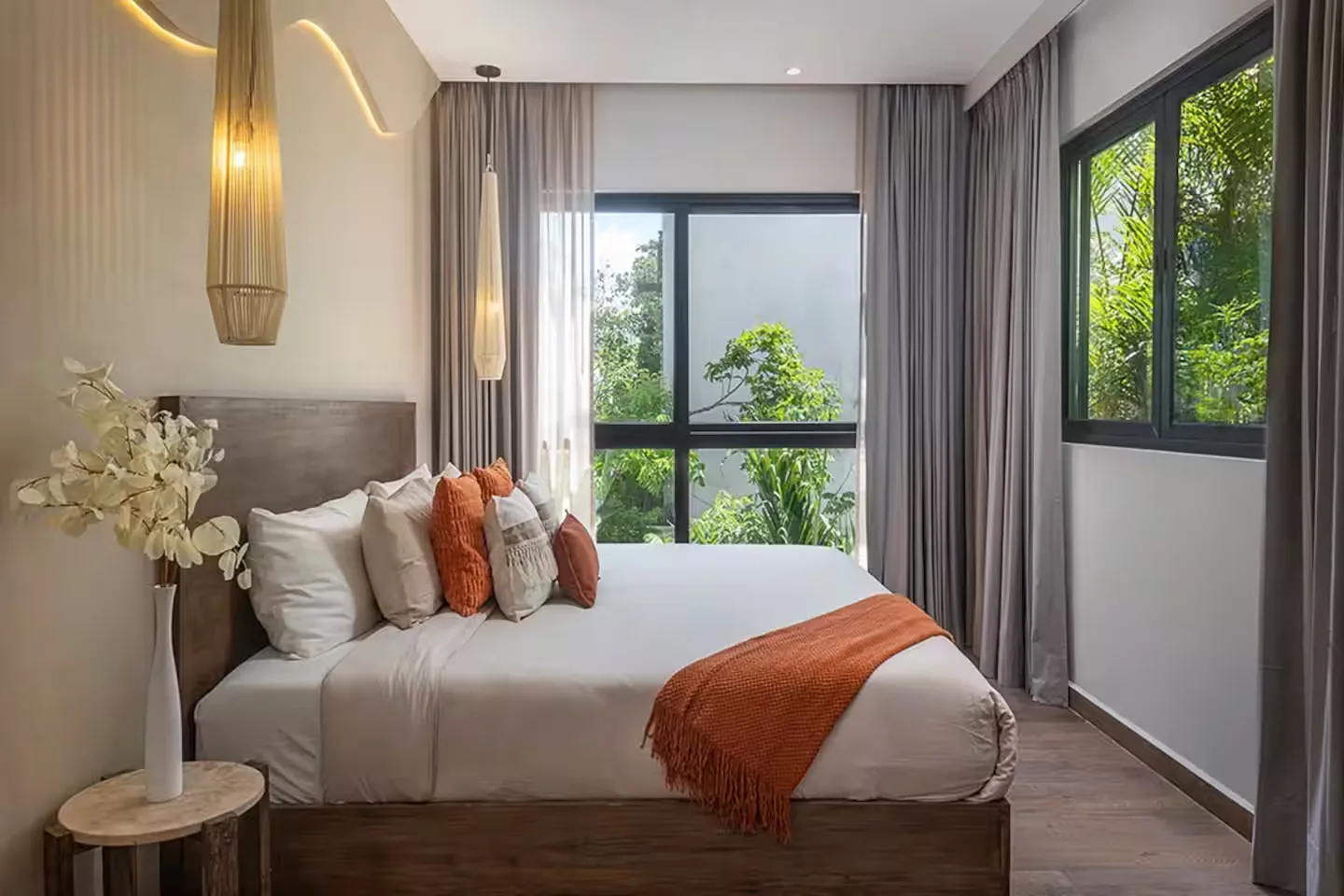 Each bedroom includes its own ensuite bathroom, a king-size bed, and ample storage space. The villa is equipped with robust air conditioning, high-speed fiber optic internet with Starlink backup, and a whole-house generator.