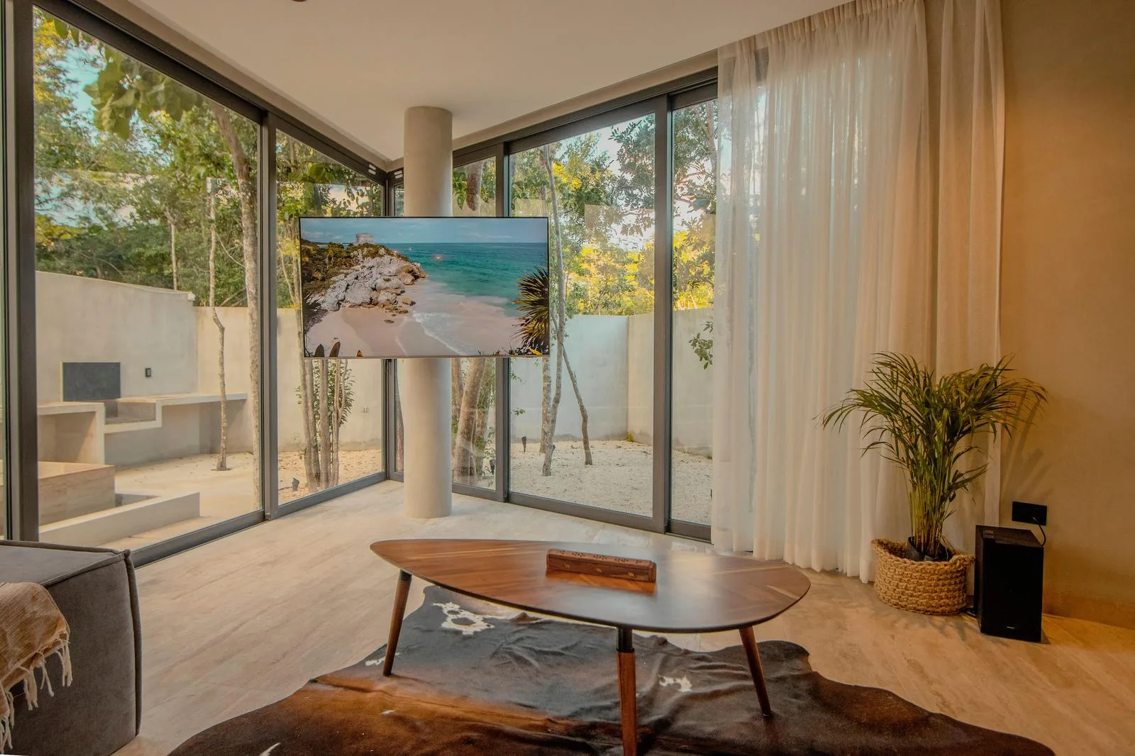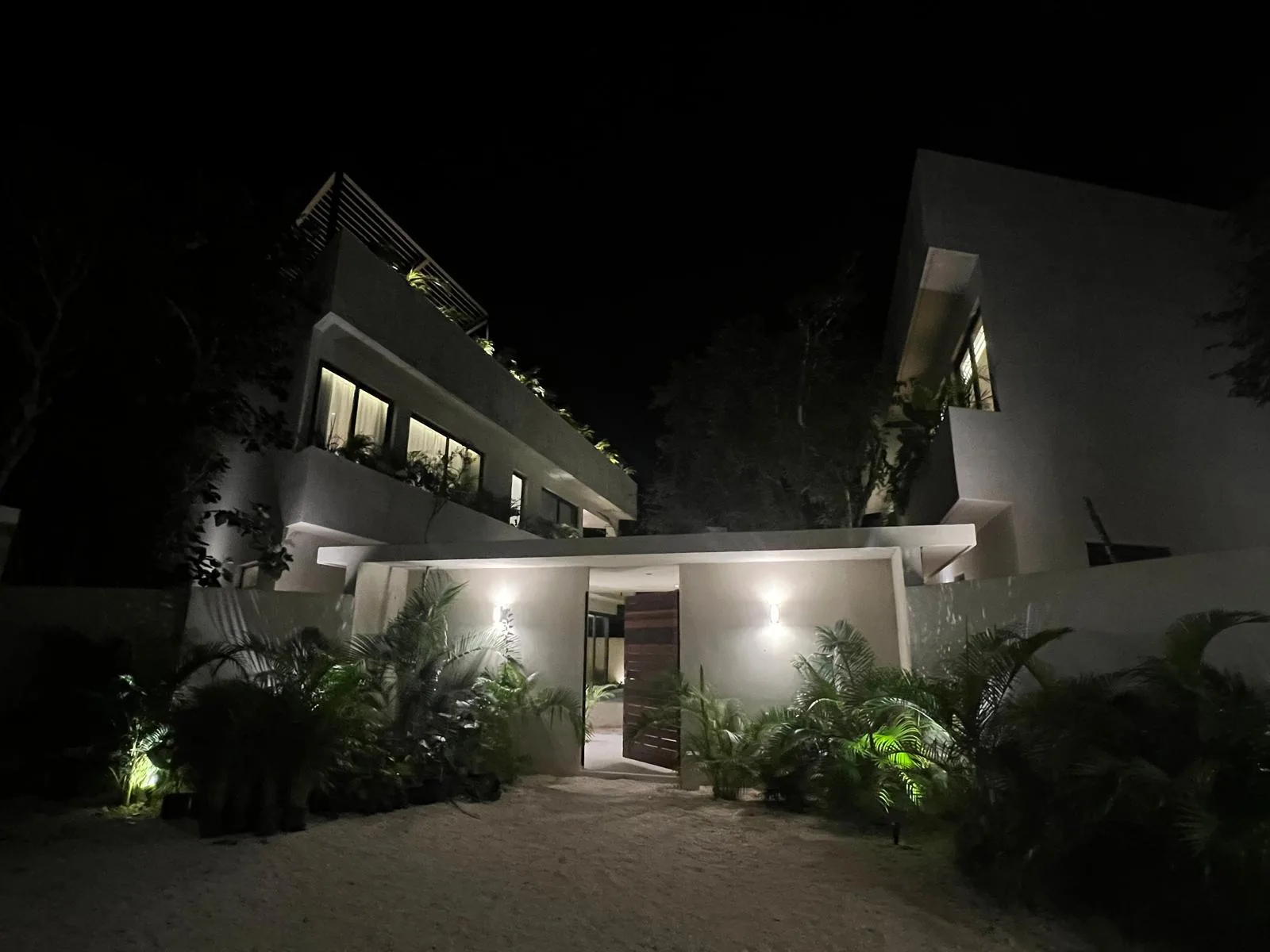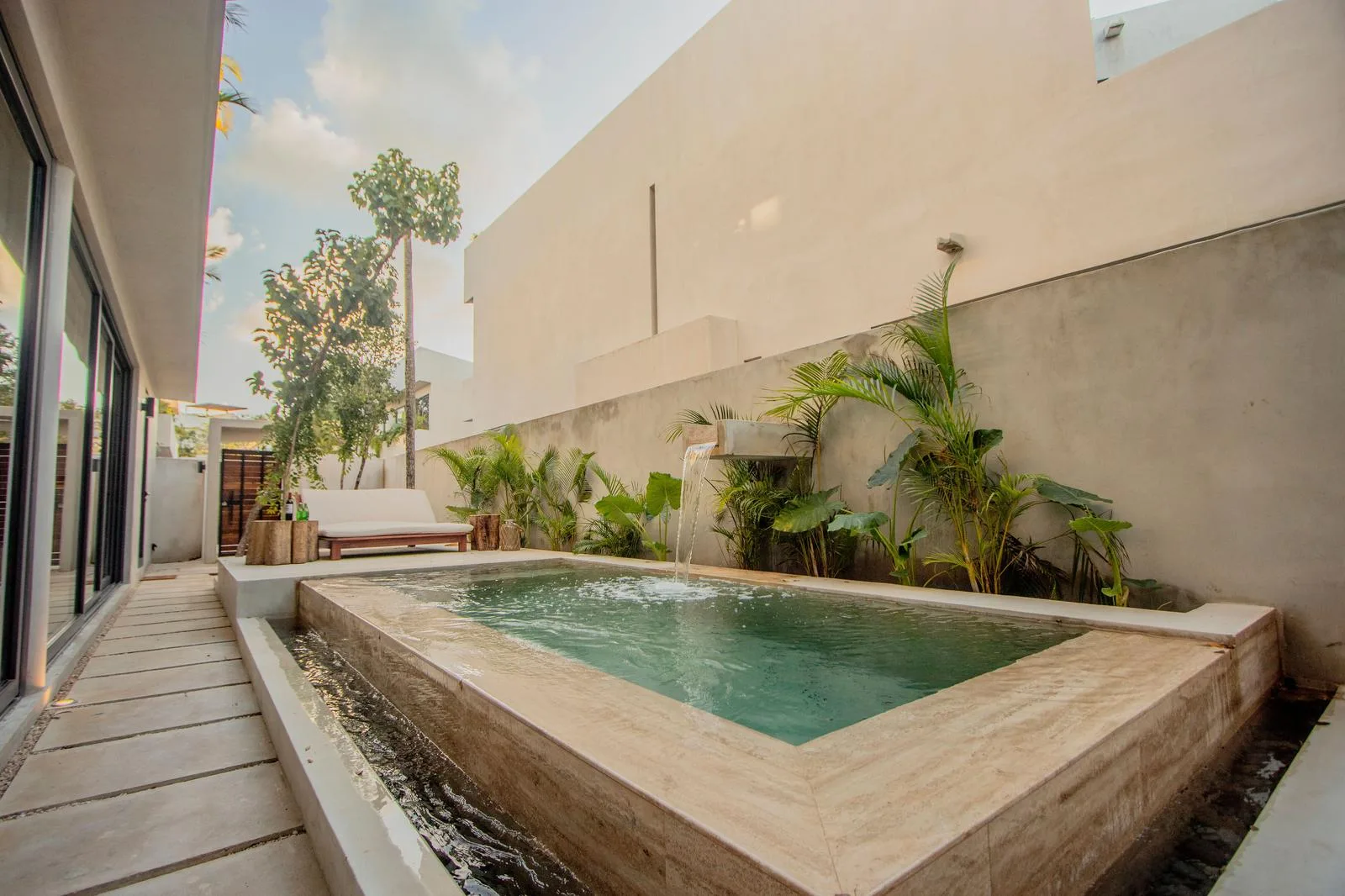 The development comprises four luxury villas featuring controlled access for privacy and security, set within the jungle environment of Tulum. The location offers proximity to the beach, approximately four minutes away.