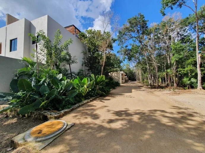 The location in Tulum offers proximity to various attractions: five minutes to the Hotel Zone, less than ten minutes to the beach, five minutes to the Tulum Archaeological Zone, 150 meters from the Cancún-Tulum highway, five minutes to supermarkets and services, and around 60 minutes from the international airport.