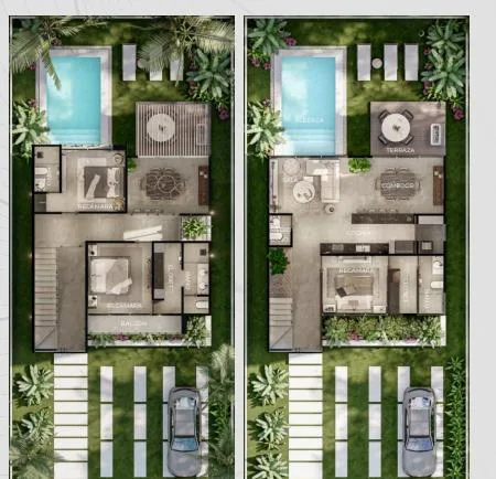 The properties feature spacious social and private areas with a modern and functional design. Each villa includes a private garden or terrace.