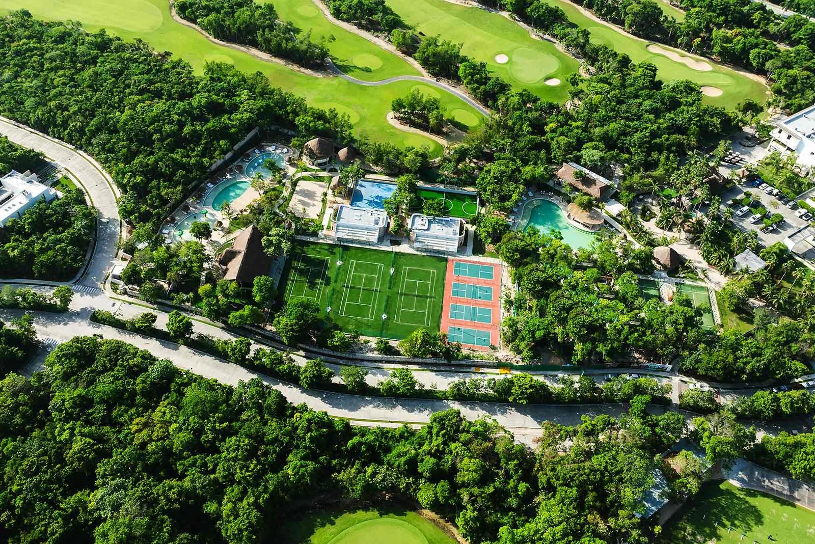 The residence is situated within the Tulum Country Club community. The community offers access to a PGA golf course, a school, a sports academy, and 24-hour security.