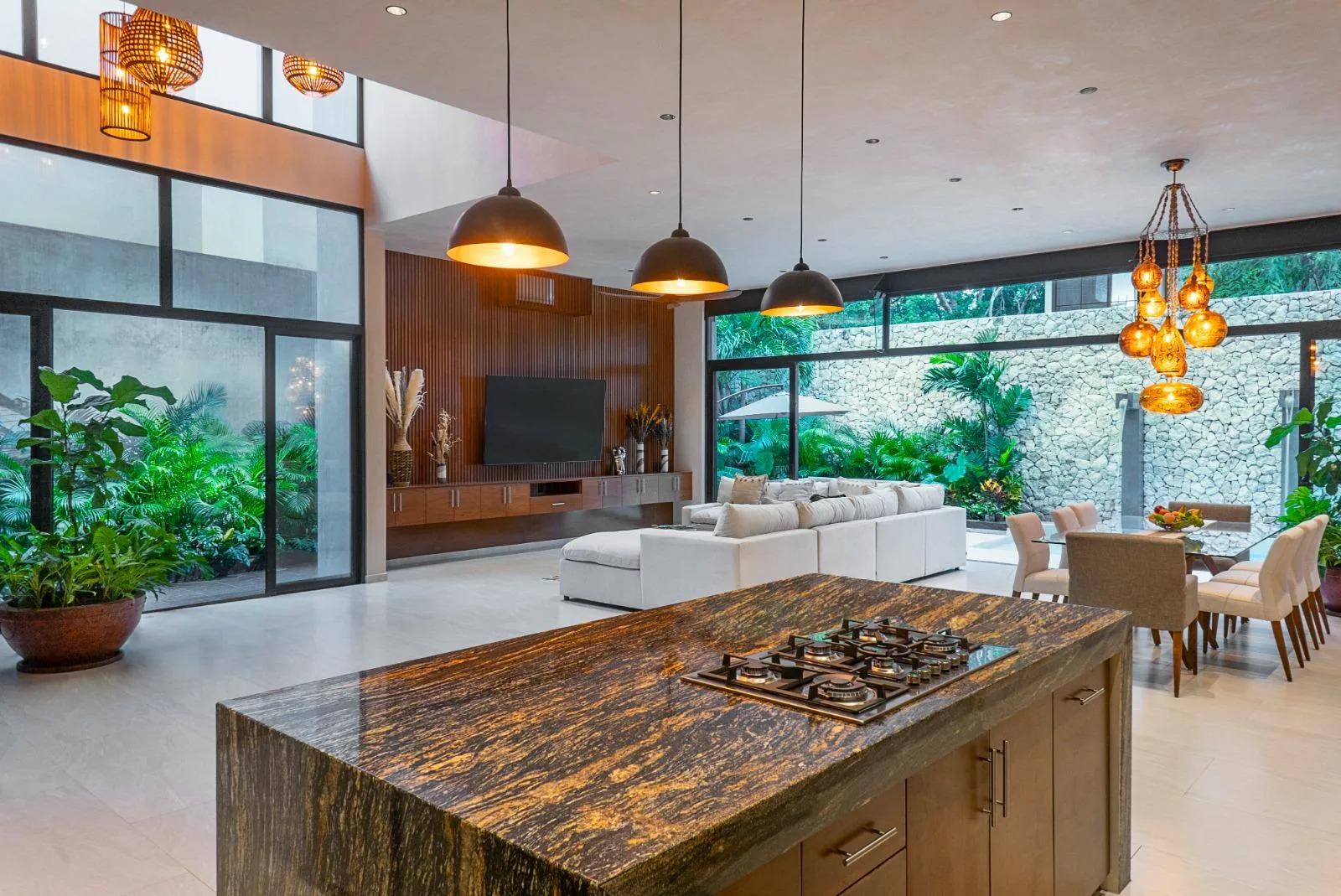 The property includes 40 solar panels, a pressure change pump, and water softeners. All window frames are made of Tzalam and Cedar wood. The bathrooms are finished with high-quality imported granite. LED lighting is installed throughout the home. Mini-split air conditioning units are present in all areas. The villa features Spanish windows that ensure quality and insulation. A fast internet connection is available with antennas distributed in all rooms. The villa is sold furnished.