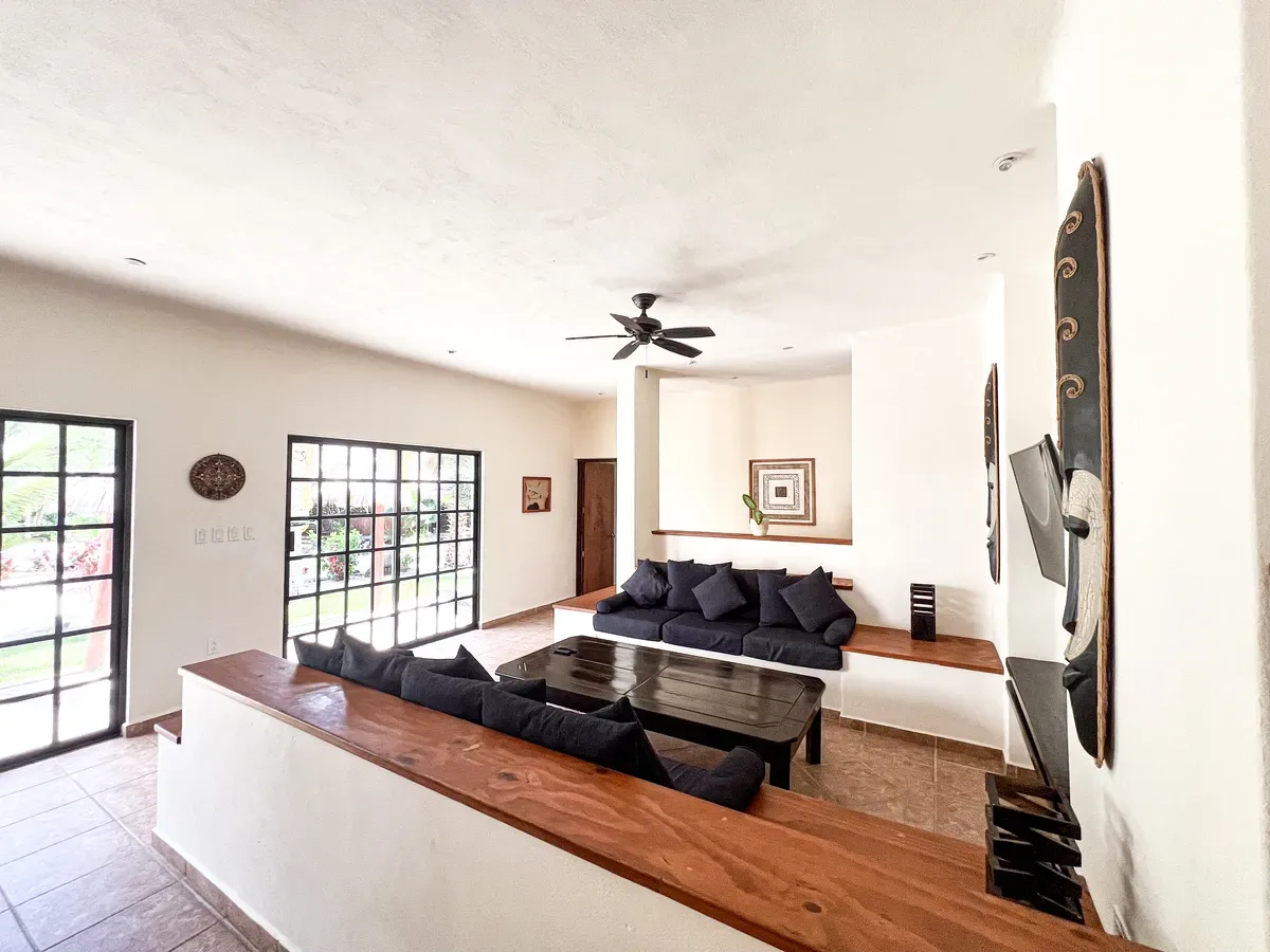 The estate features a large pool area and a palapa. The grounds include a private cenote. The villas present a spacious open floor plan and are fully furnished.