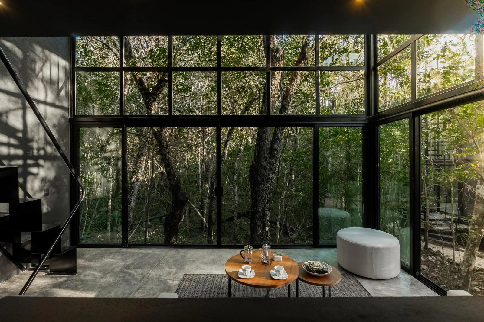 The first floor contains a bedroom with a panoramic view and a full bathroom.