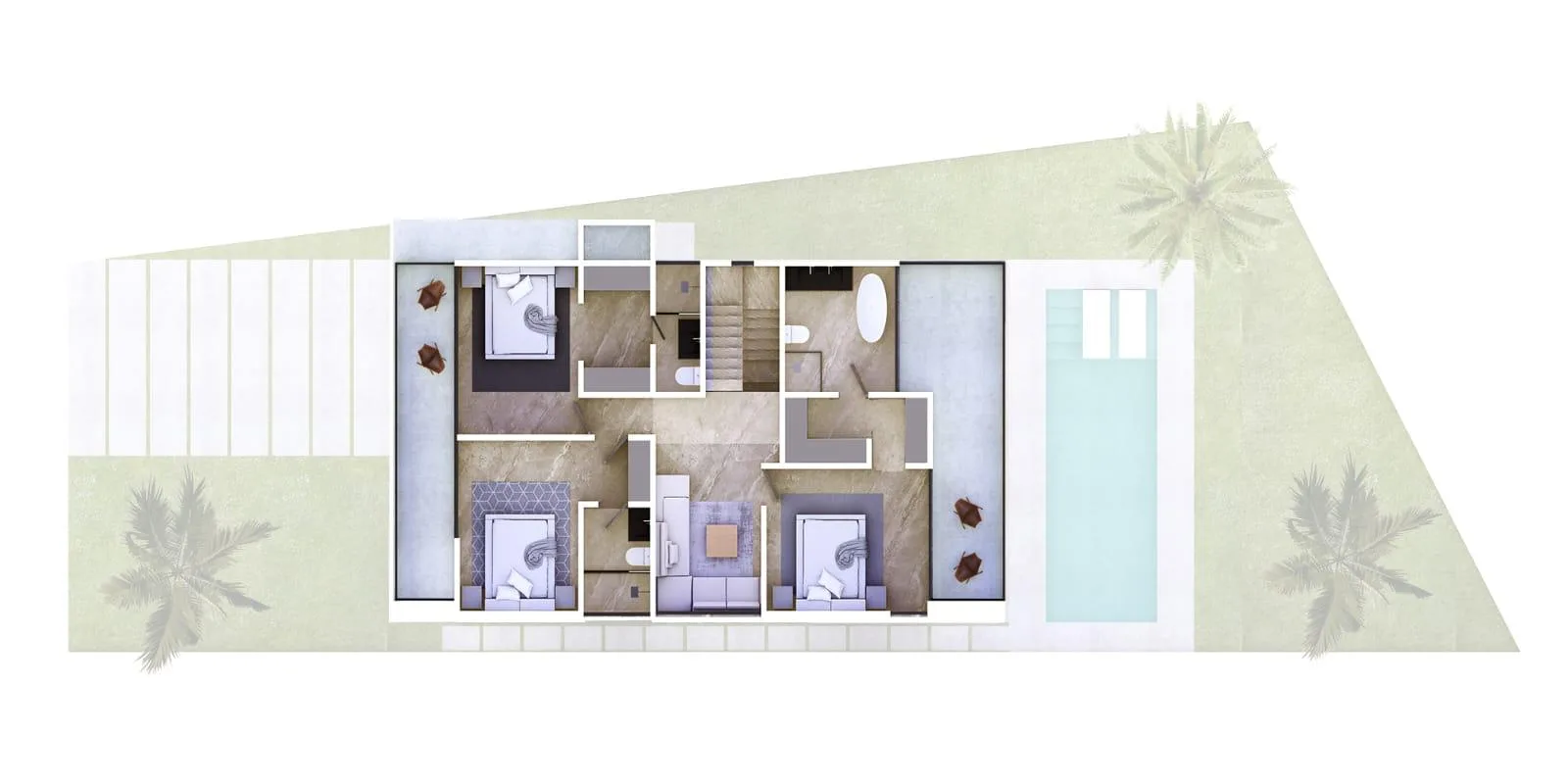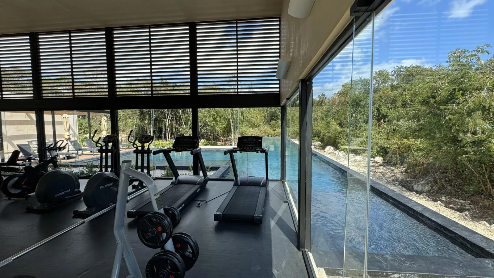 The property is in the Xpu-Ha area, approximately 15 minutes south of Playa del Carmen and 20 minutes from Tulum, situated between the two cities near the Maya Train route. The nearby Xpu-Ha beach is 4 kilometers long. Residents have access to a private beach club located approximately 1 kilometer away, accessible via a dedicated tunnel for golf carts or bicycles. The beach club offers a restaurant, bar, sun loungers, and a swimming pool.