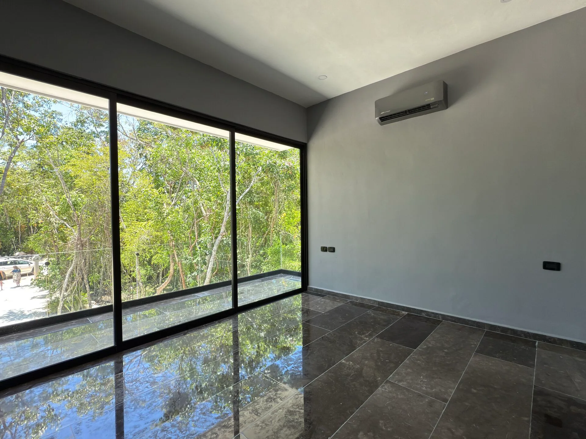 The villa is situated in the Xpu-Ha area, approximately 15 minutes south of Playa del Carmen and 20 minutes from Tulum, near the Mayan Train route. The HOA fee is 100 USD per month.